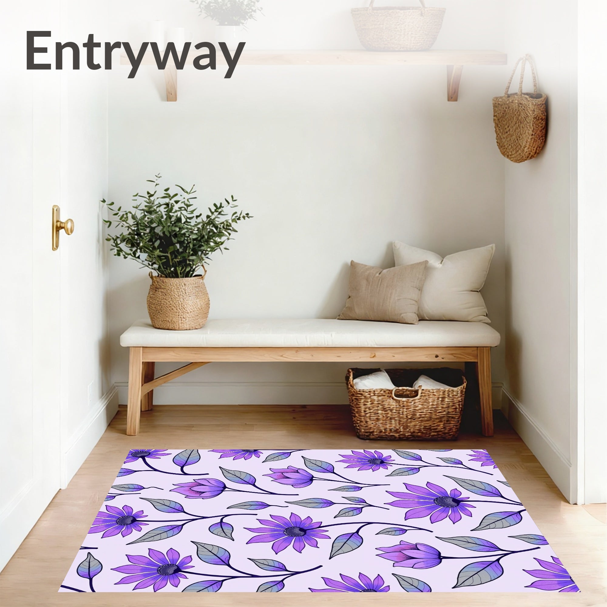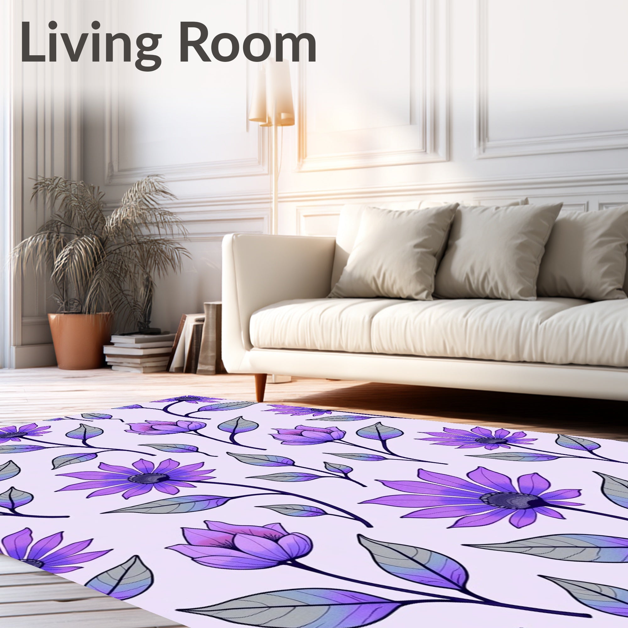 Flatwoven High Traffic Area Rug, Enchanted Garden Blossom Floral Decorative Artistic, Non Slip, Stain Resistant, Washable Area Rugs for Living Room, Bedroom (Purple) Overview: