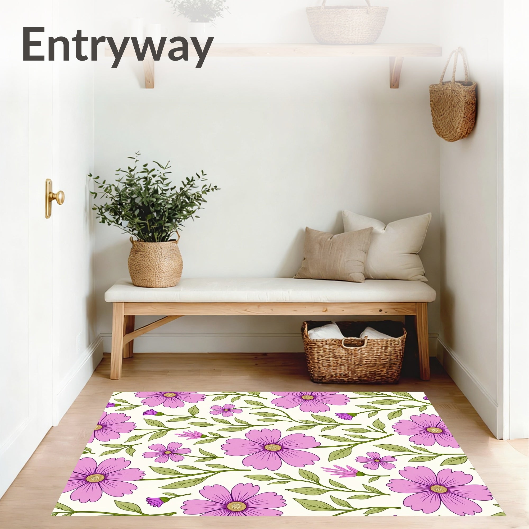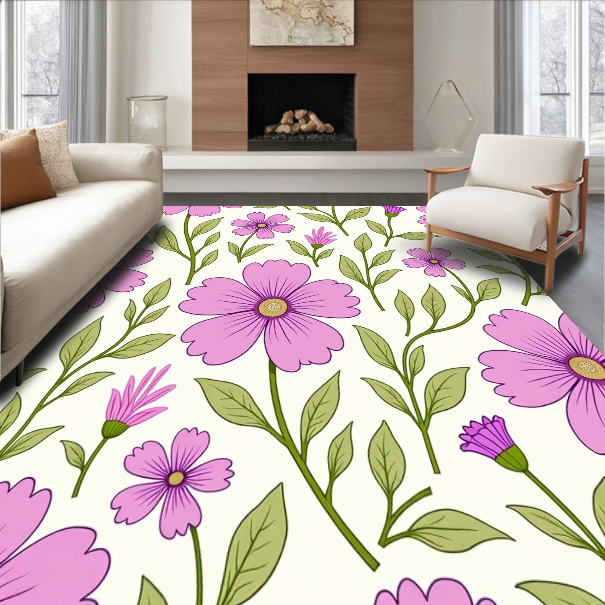 Flatwoven High Traffic Area Rug, Enchanted Garden Blossom Swirl Fantasy, Non Slip, Stain Resistant, Washable Area Rugs for Living Room, Bedroom (Pink) Overview: