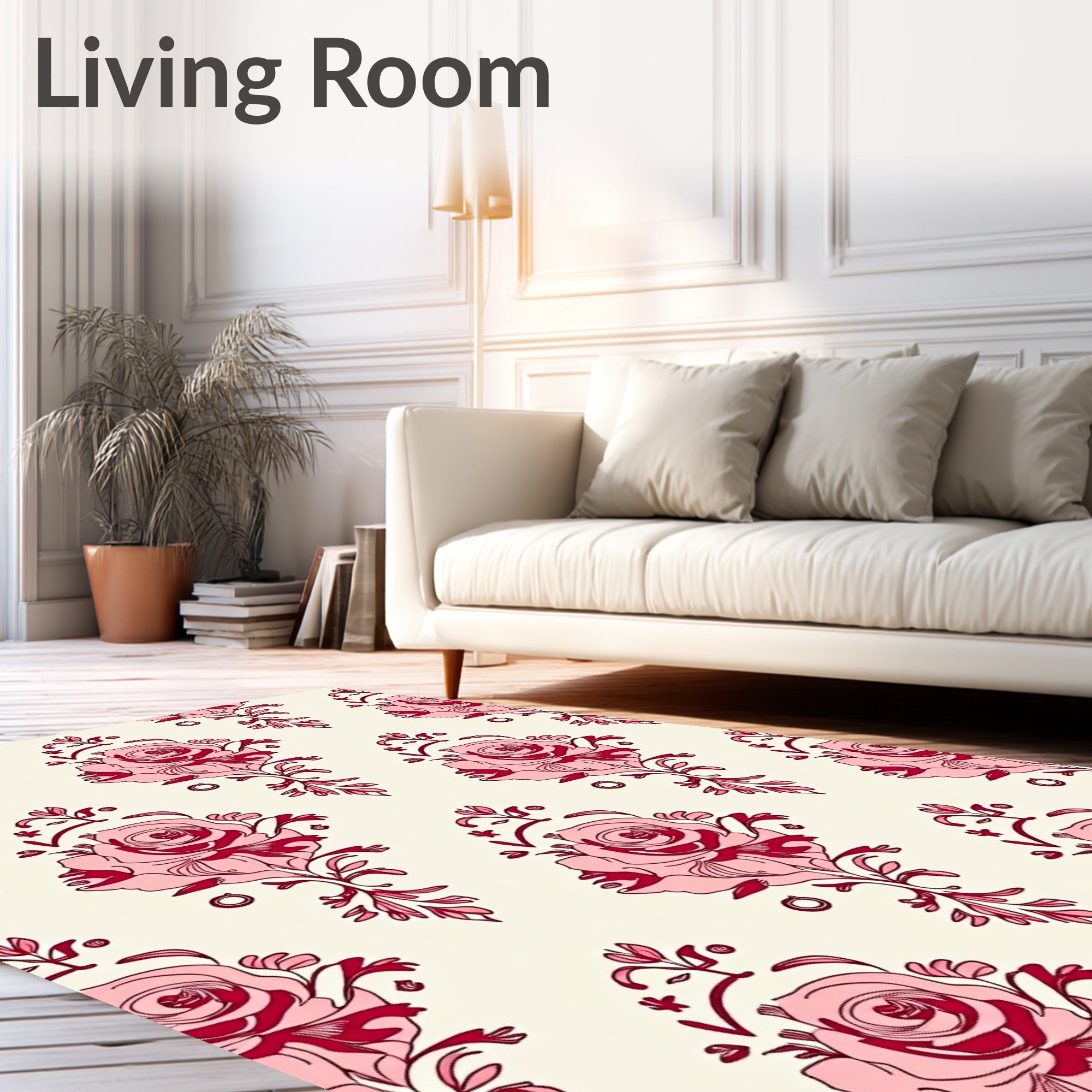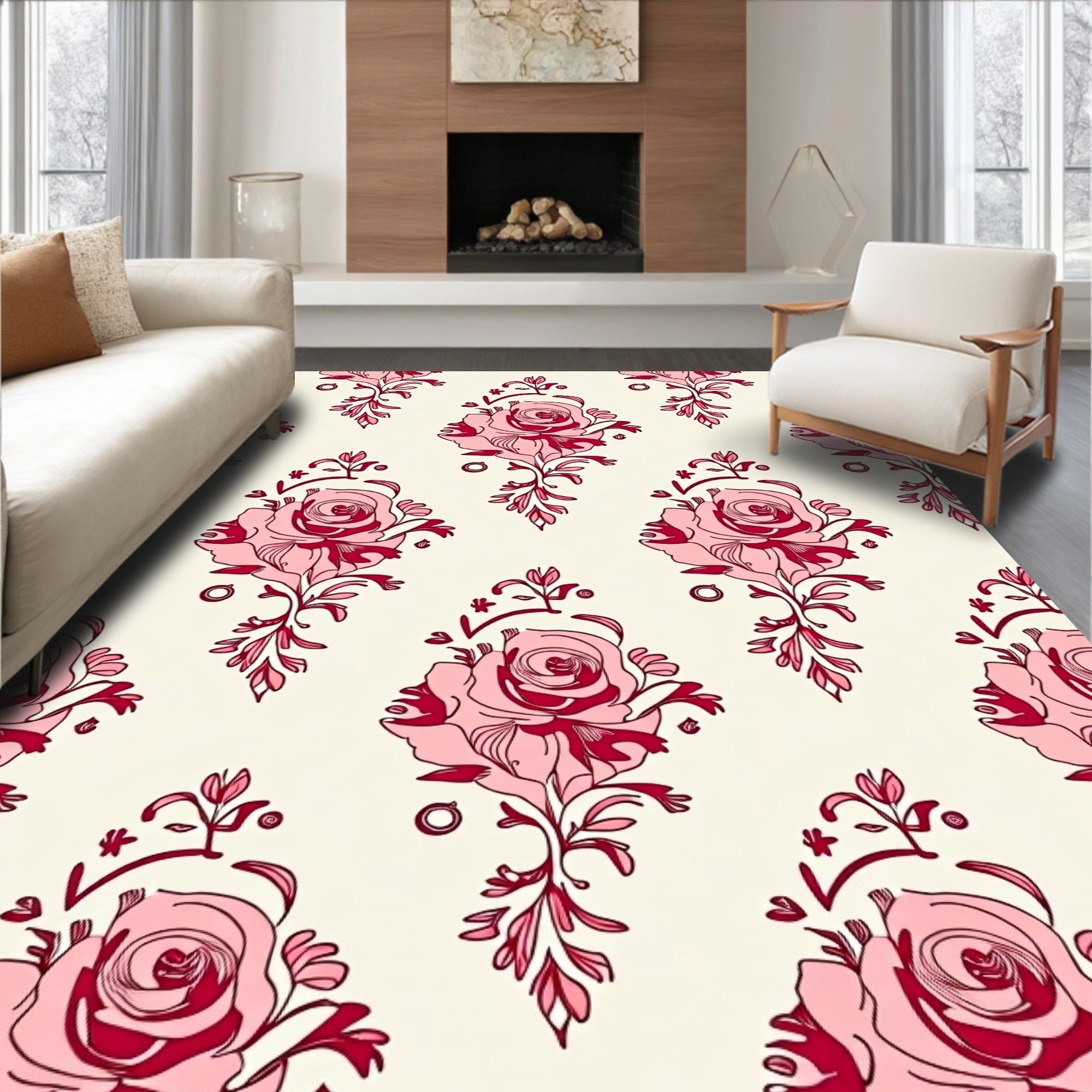 Flatwoven High Traffic Area Rug, Enchanted Garden Damask Heritage Timeless Heirloom Splendor, Non Slip, Stain Resistant, Washable Area Rugs for Living Room, Bedroom (Pink) Overview:
