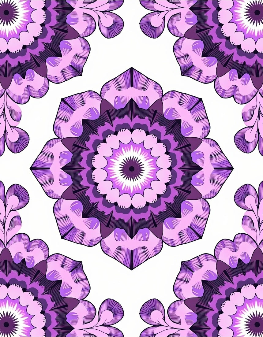 Enchanted Garden Medallion Vintage Distressed Floral Motif (Purple)