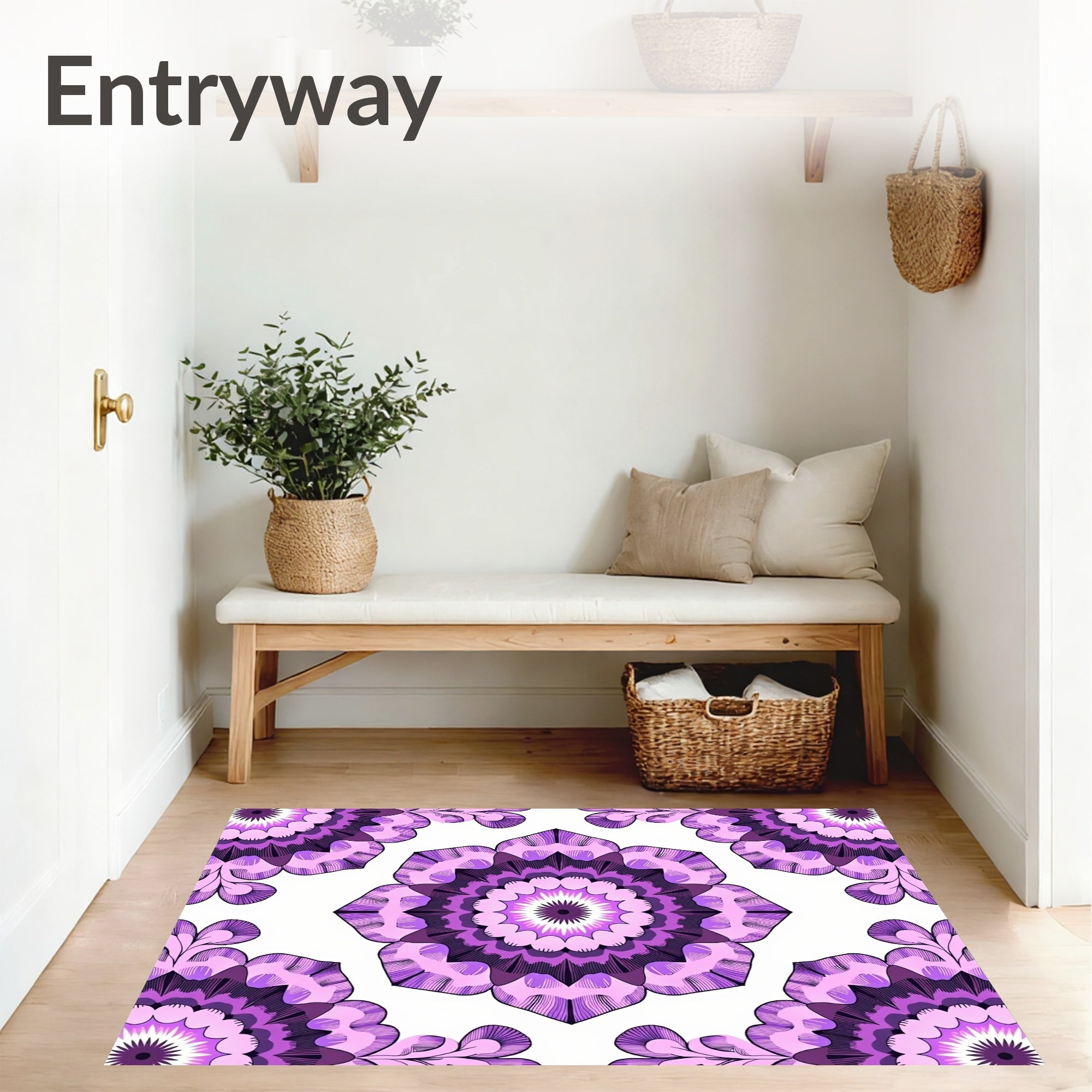 Flatwoven High Traffic Area Rug, Enchanted Garden Medallion Vintage Distressed Floral Motif, Non Slip, Stain Resistant, Washable Area Rugs for Living Room, Bedroom (Purple) Overview: