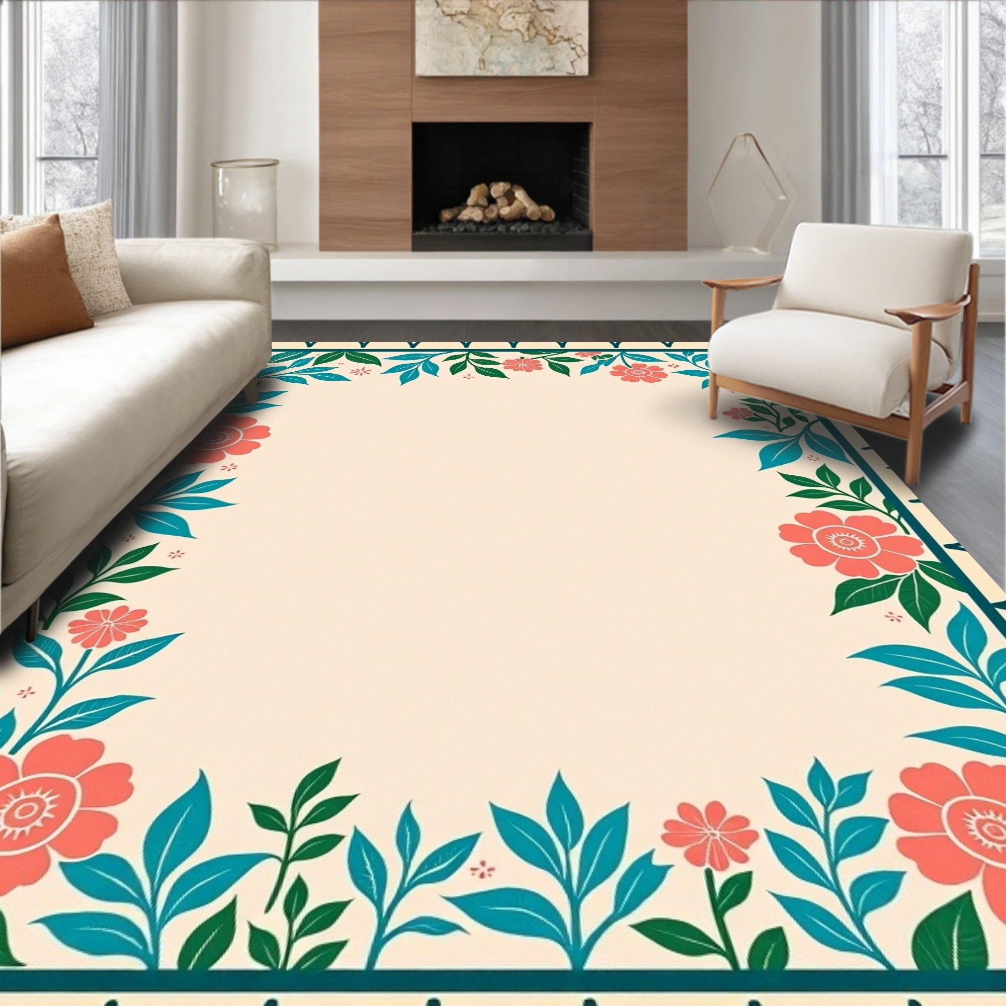 Flatwoven High Traffic Area Rug, Enchanted Garden Scallop Edge Floral Symphony, Non Slip, Stain Resistant, Washable Area Rugs for Living Room, Bedroom (Ivory) Overview: