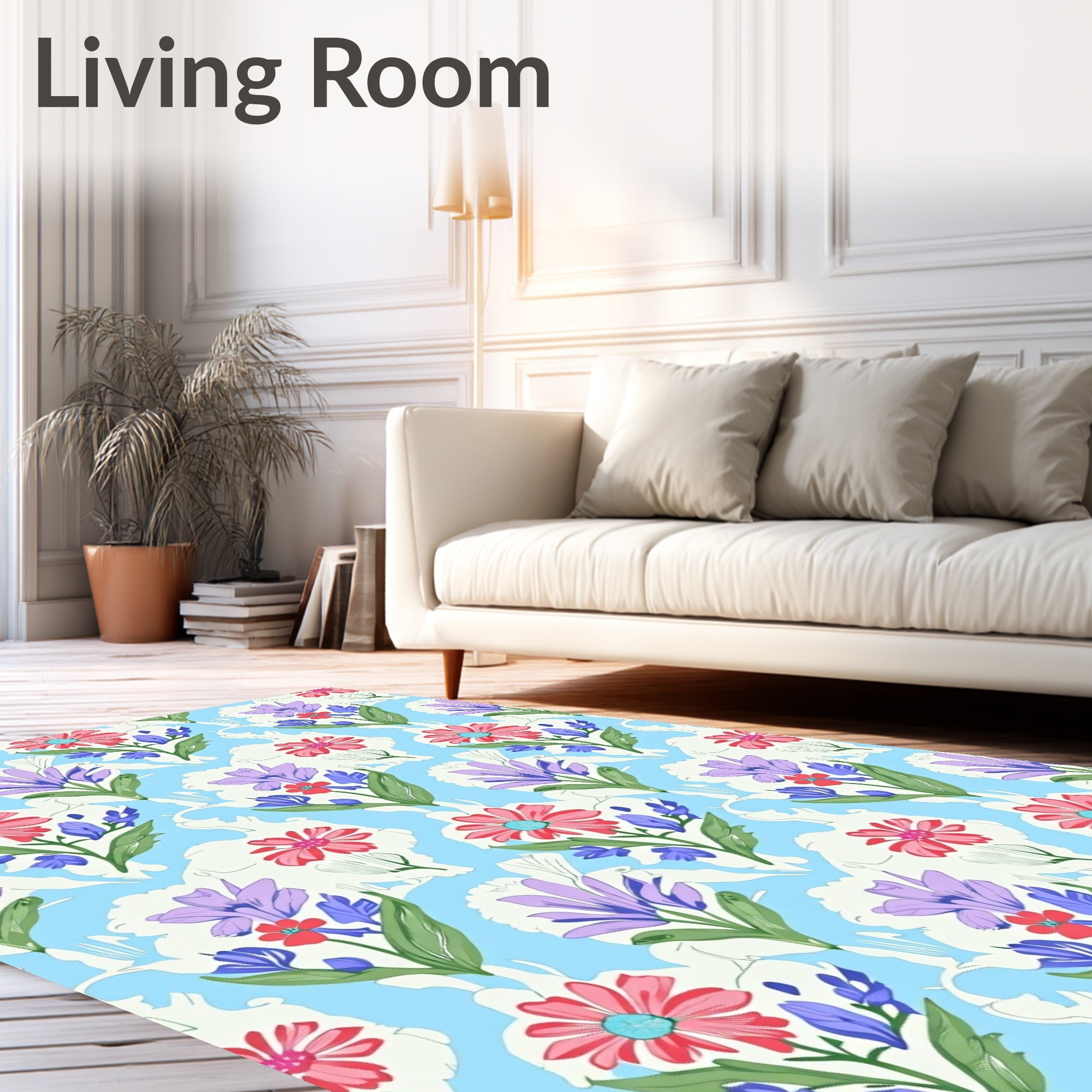 Flatwoven High Traffic Area Rug, Enchanted Garden Whimsical Bloom Artistic, Non Slip, Stain Resistant, Washable Area Rugs for Living Room, Bedroom (Blue) Overview: