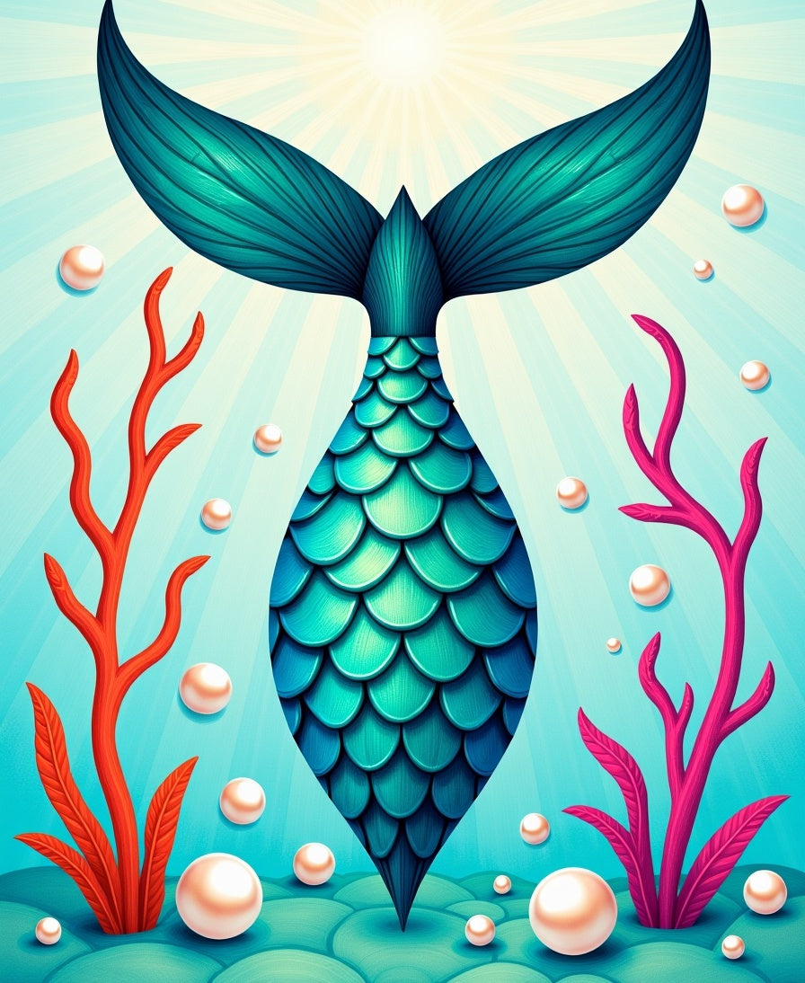 Enchanted Mermaid Tail Scales Ocean Waves Underwater Magic (Blue)