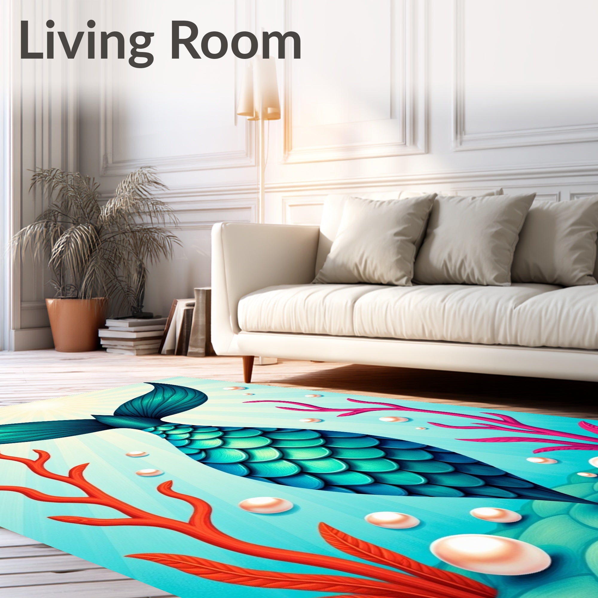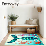 Flatwoven High Traffic Area Rug, Enchanted Mermaid Tail Scales Ocean Waves Underwater Magic, Non Slip, Stain Resistant, Washable Area Rugs for Living Room, Bedroom (Blue) Overview: