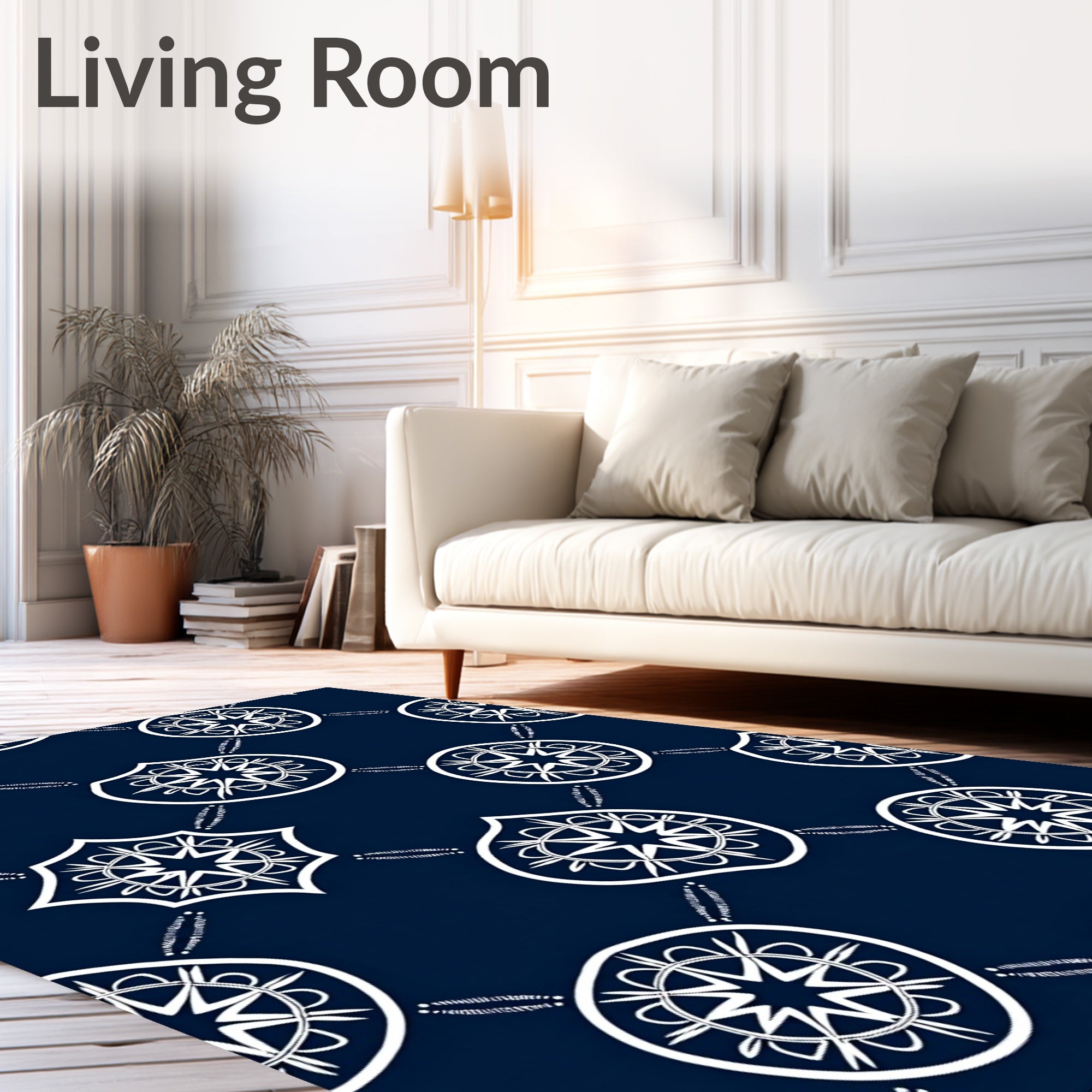 Flatwoven High Traffic Area Rug, Enchanted Nautical Compass Wave Journey, Non Slip, Stain Resistant, Washable Area Rugs for Living Room, Bedroom (Blue) Overview: