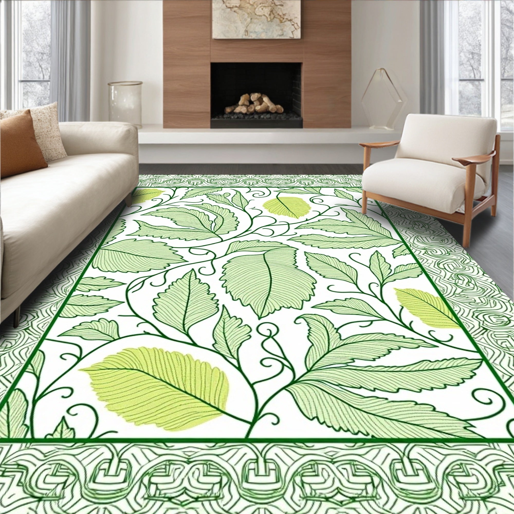 Flatwoven High Traffic Area Rug, Enchanted Valley Interlocking Vinework with Subtle Dinosaur Embellishments, Non Slip, Stain Resistant, Washable Area Rugs for Living Room, Bedroom (Green) Overview:
