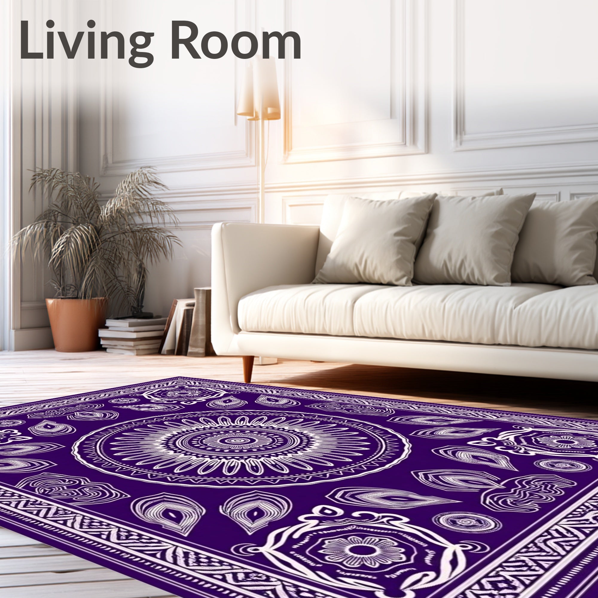 Flatwoven High Traffic Area Rug, Enchanting Boho Showcasing Elaborate Ornamental Detail, Non Slip, Stain Resistant, Washable Area Rugs for Living Room, Bedroom (Purple) Overview:
