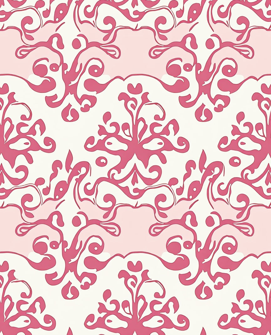 Enchanting Botanical Garden Swirl Abstract Damask Contemporary (Pink)