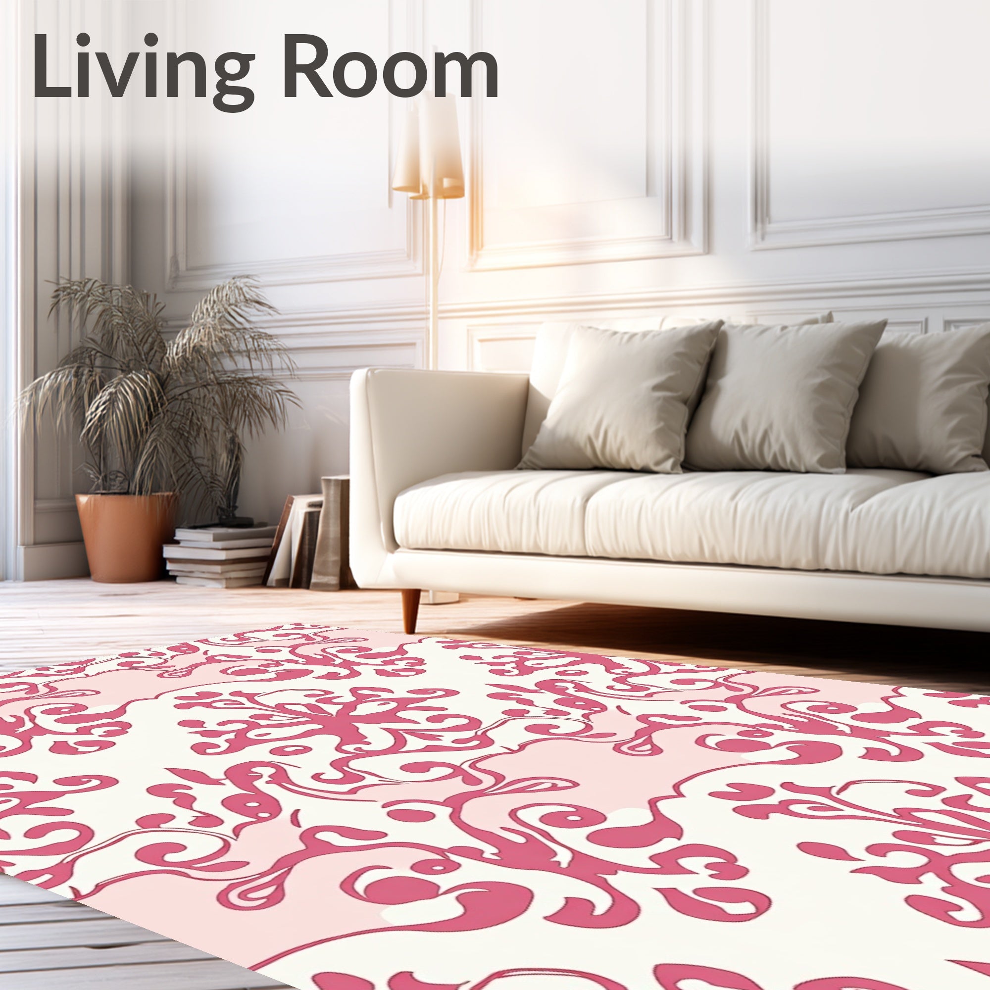 Flatwoven High Traffic Area Rug, Enchanting Botanical Garden Swirl Abstract Damask Contemporary, Non Slip, Stain Resistant, Washable Area Rugs for Living Room, Bedroom (Pink) Overview:
