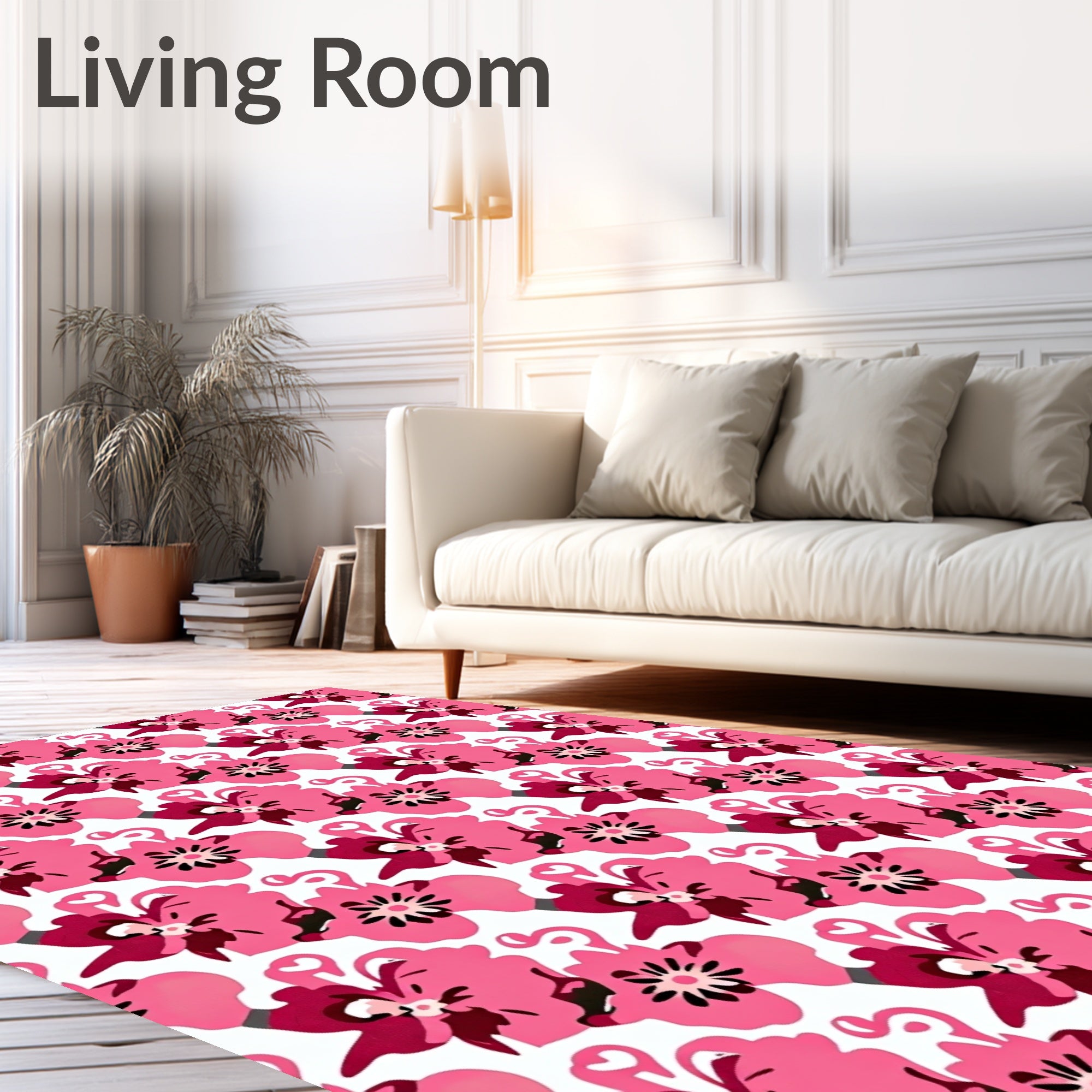 Flatwoven High Traffic Area Rug, Enchanting Floral Blossom Artistic Swirly Whimsical Lovely Accent, Non Slip, Stain Resistant, Washable Area Rugs for Living Room, Bedroom (Pink) Overview: