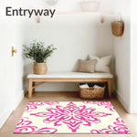 Flatwoven High Traffic Area Rug, Enchanting Medallion Swirl Abstract Artistic Decorative Stylish Accent, Non Slip, Stain Resistant, Washable Area Rugs for Living Room, Bedroom (Pink) Overview: