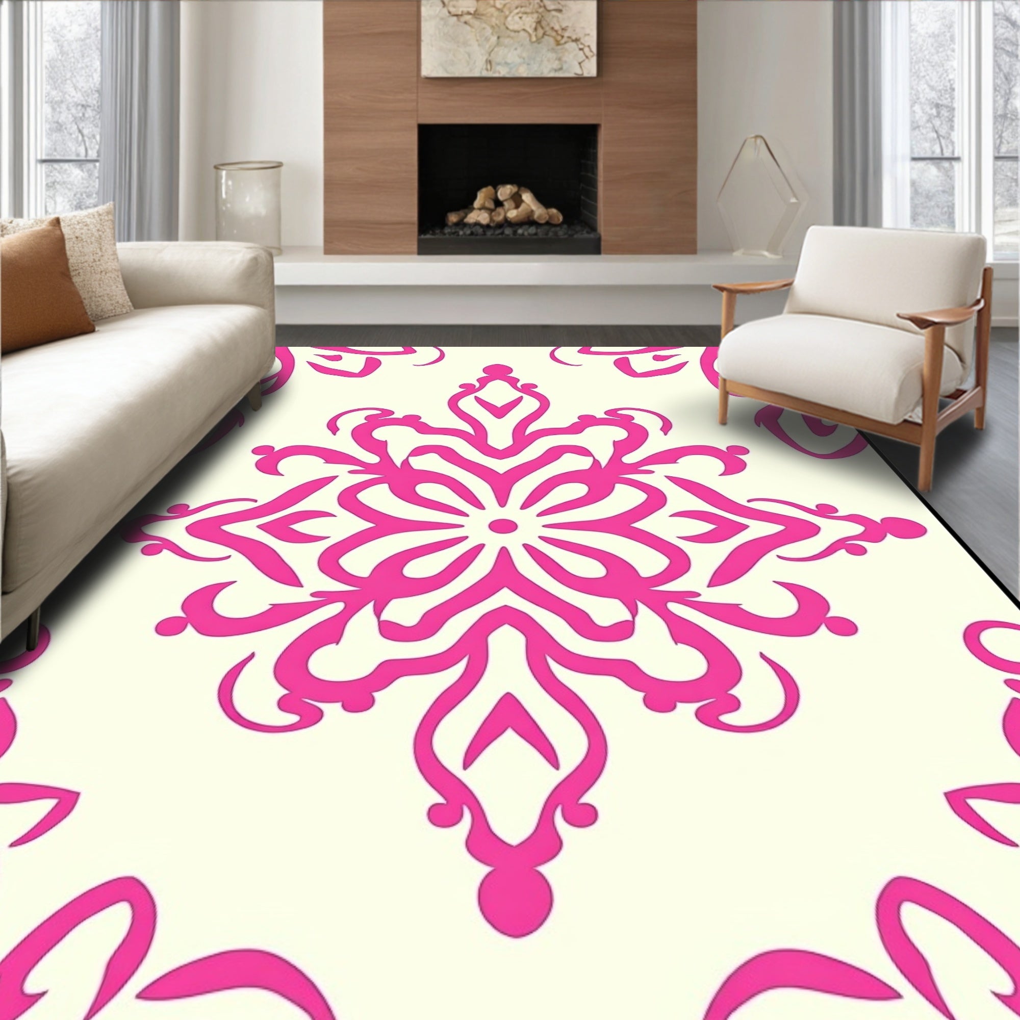 Enchanting Medallion Swirl Abstract Artistic Decorative Stylish Accent (Pink)