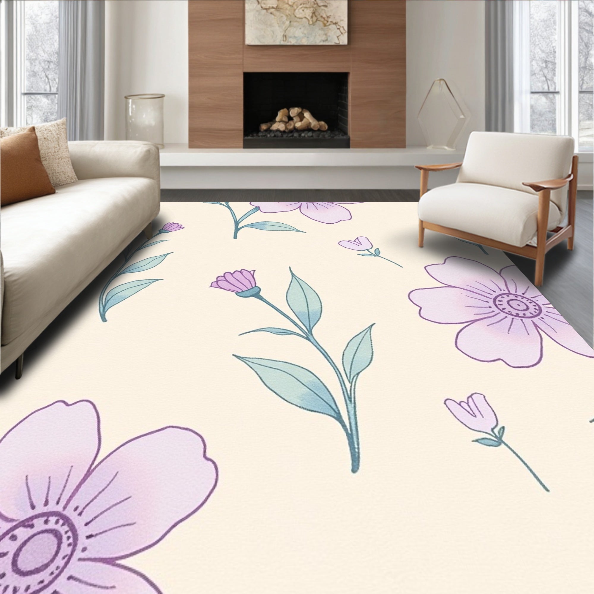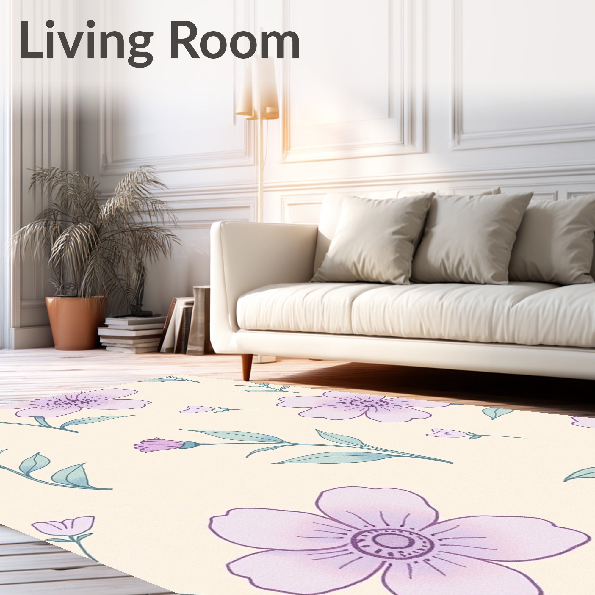 Flatwoven High Traffic Area Rug, Ethereal Blossom Compact Portable, Non Slip, Stain Resistant, Washable Area Rugs for Living Room, Bedroom (Ivory) Overview: