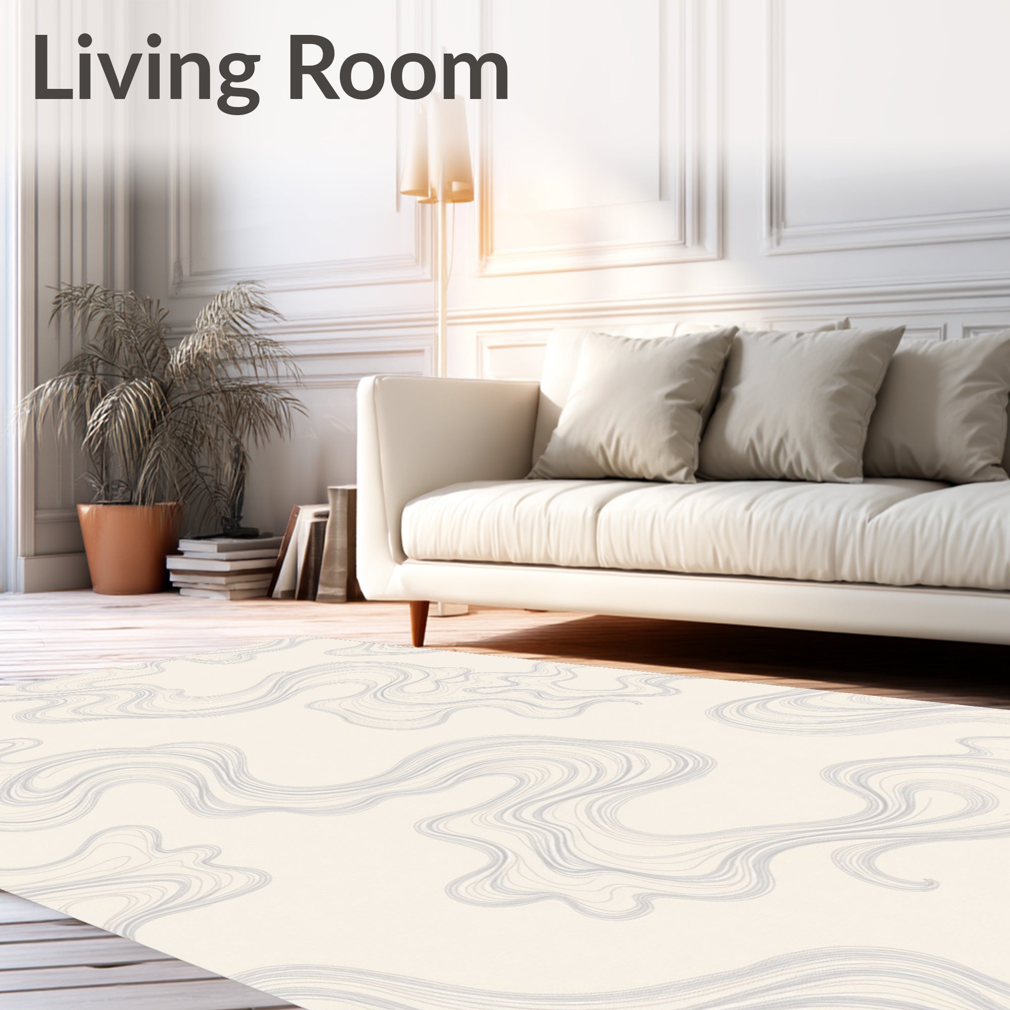 Elevate your living room with the subtle sophistication of our Cream and Grey Flowing Swirls Area Rug. This modern abstract design features ethereal, smoke-like tendrils in a refined cool grey that drift across a warm, cream canvas, creating a sense of fluid movement and airy openness. Engineered for the demands of a busy home, this rug is exceptionally durable and stays looking fresh thanks to its low-profile construction. It is fully machine washable, making cleanup effortless for high-traffic zones. Safety and quality are paramount, as every fiber is OEKO-TEX Standard 100 certified. Whether you need a small accent or a large area rug, its low maintenance height ensures it fits perfectly under doors while providing a serene foundation for your contemporary decor.