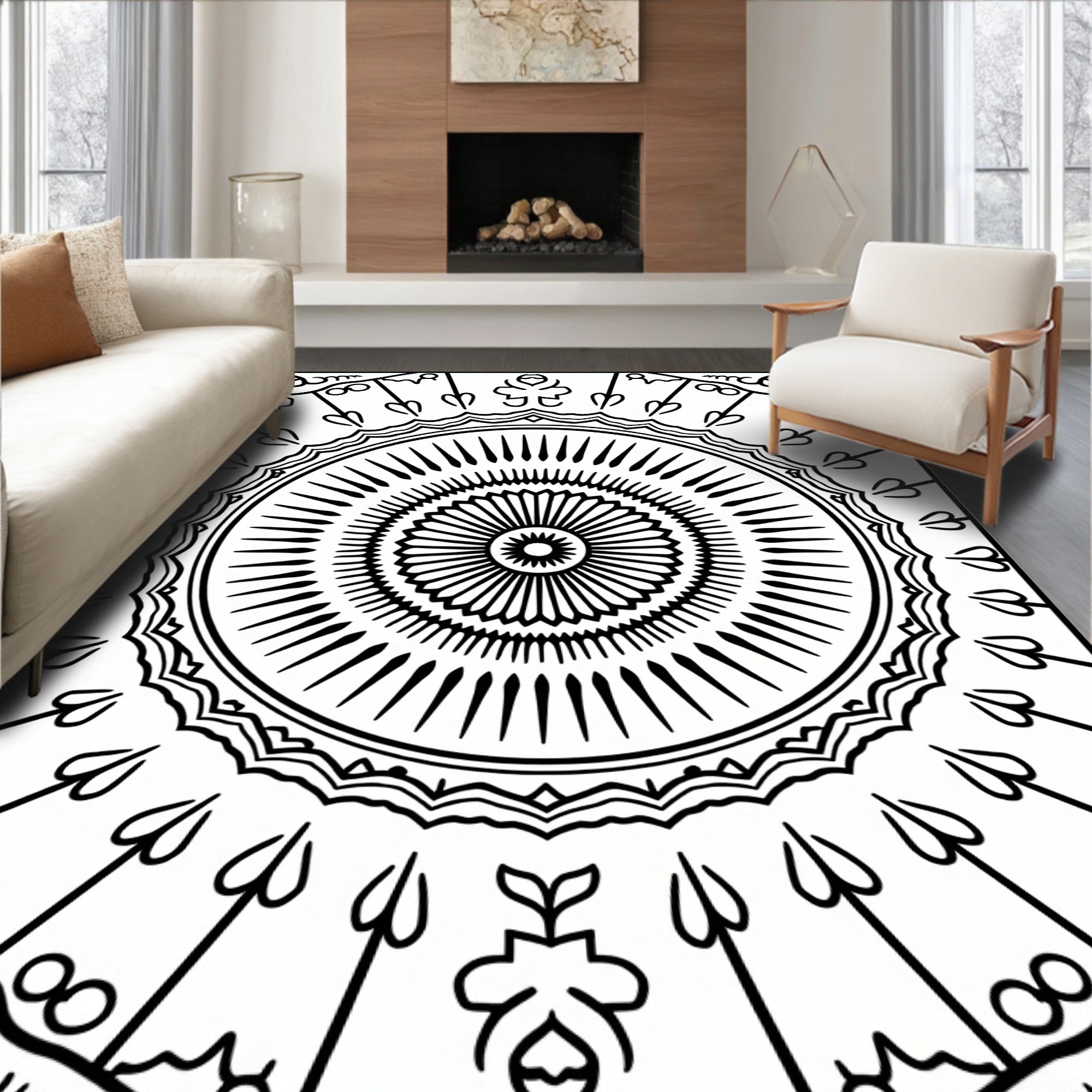 Flatwoven High Traffic Area Rug, Exquisite Boho Medallion Radiant Glamorous Distinctive Handsome Emblem, Non Slip, Stain Resistant, Washable Area Rugs for Living Room, Bedroom (Black) Overview: