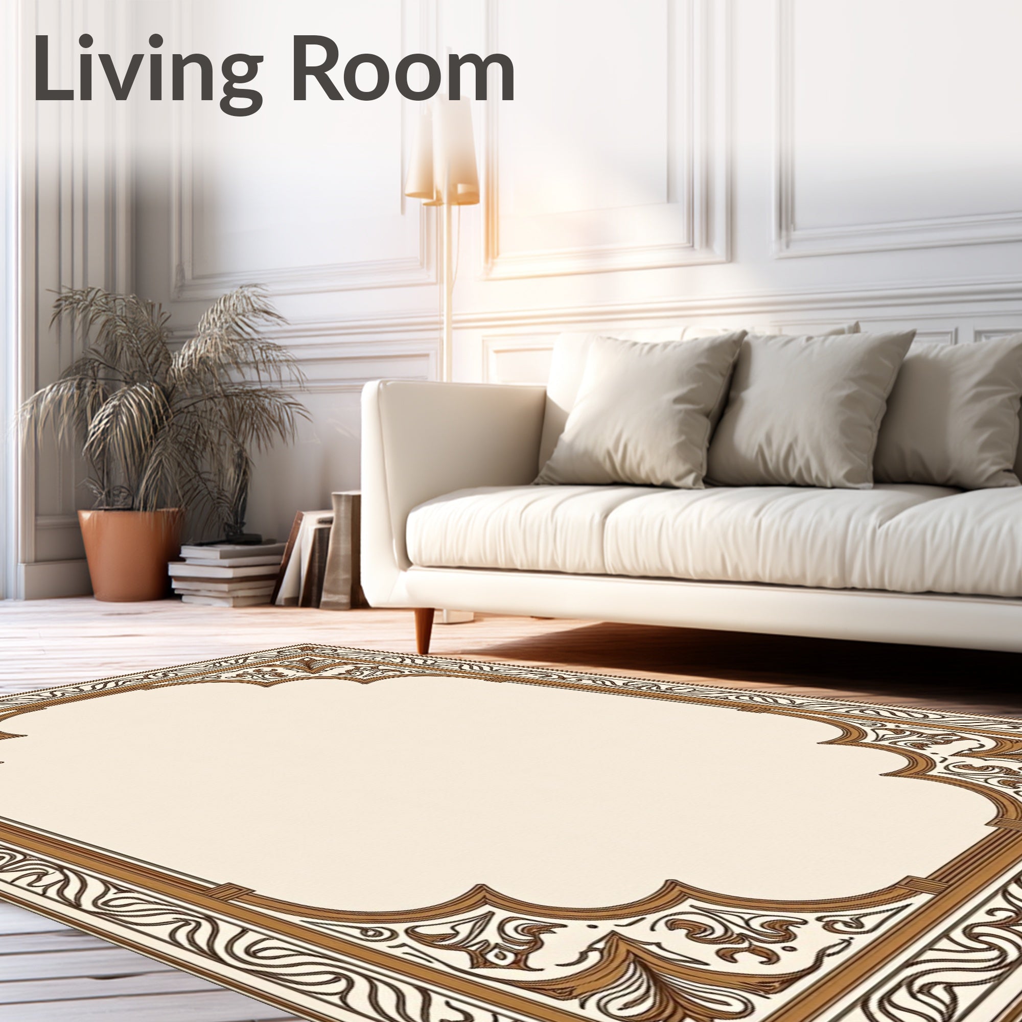 Flatwoven High Traffic Area Rug, Exquisite Bordered Medallion Decorative, Non Slip, Stain Resistant, Washable Area Rugs for Living Room, Bedroom (Beige) Overview: