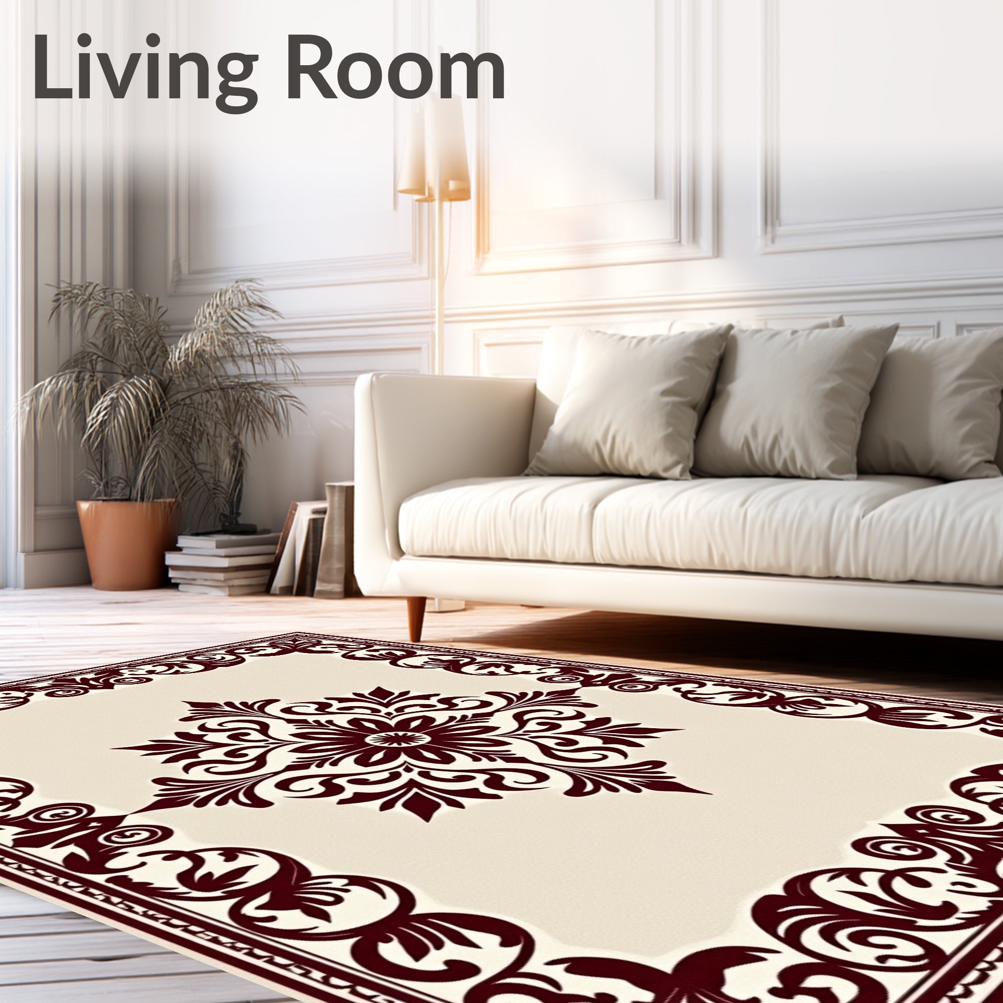 Flatwoven High Traffic Area Rug, Exquisite Damask Heritage Traditional Inspired Fashionable, Non Slip, Stain Resistant, Washable Area Rugs for Living Room, Bedroom (Ivory) Overview: