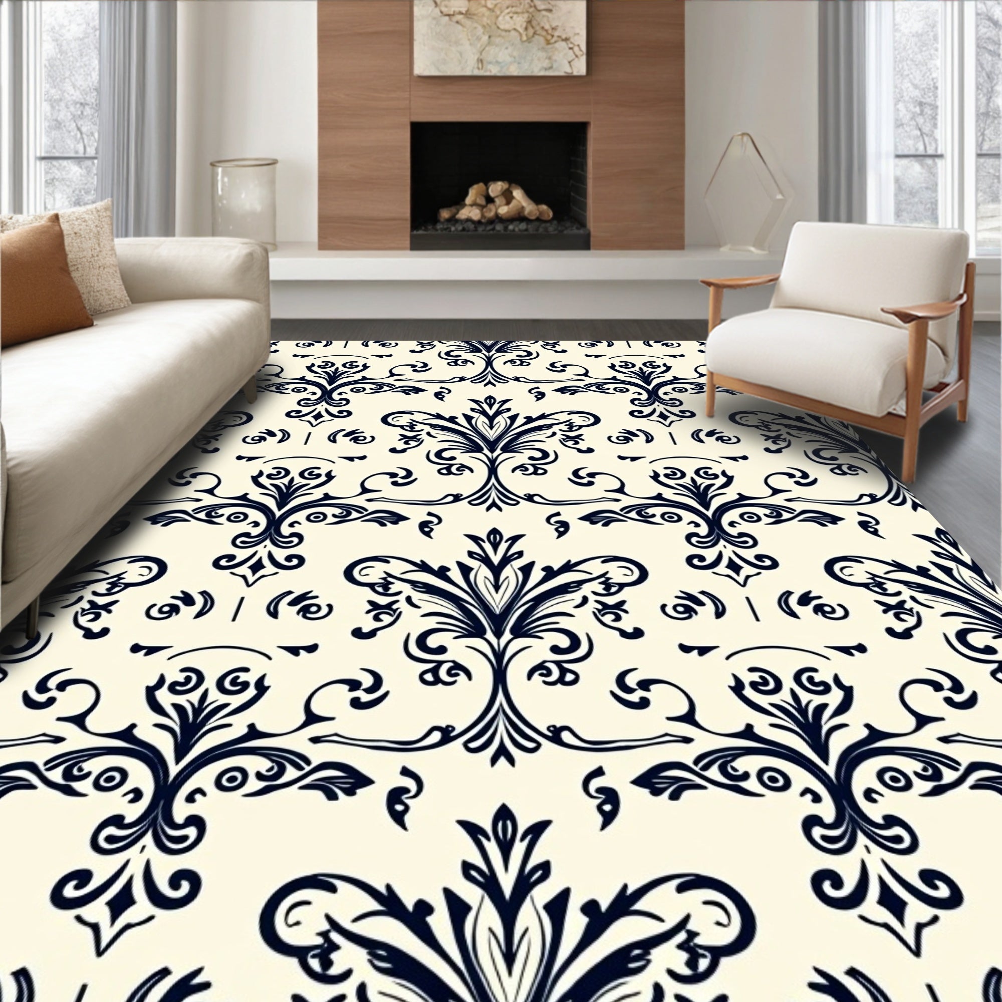 Flatwoven High Traffic Area Rug, Exquisite Heirloom Jacquard Damask Scroll, Non Slip, Stain Resistant, Washable Area Rugs for Living Room, Bedroom (Ivory) Overview: