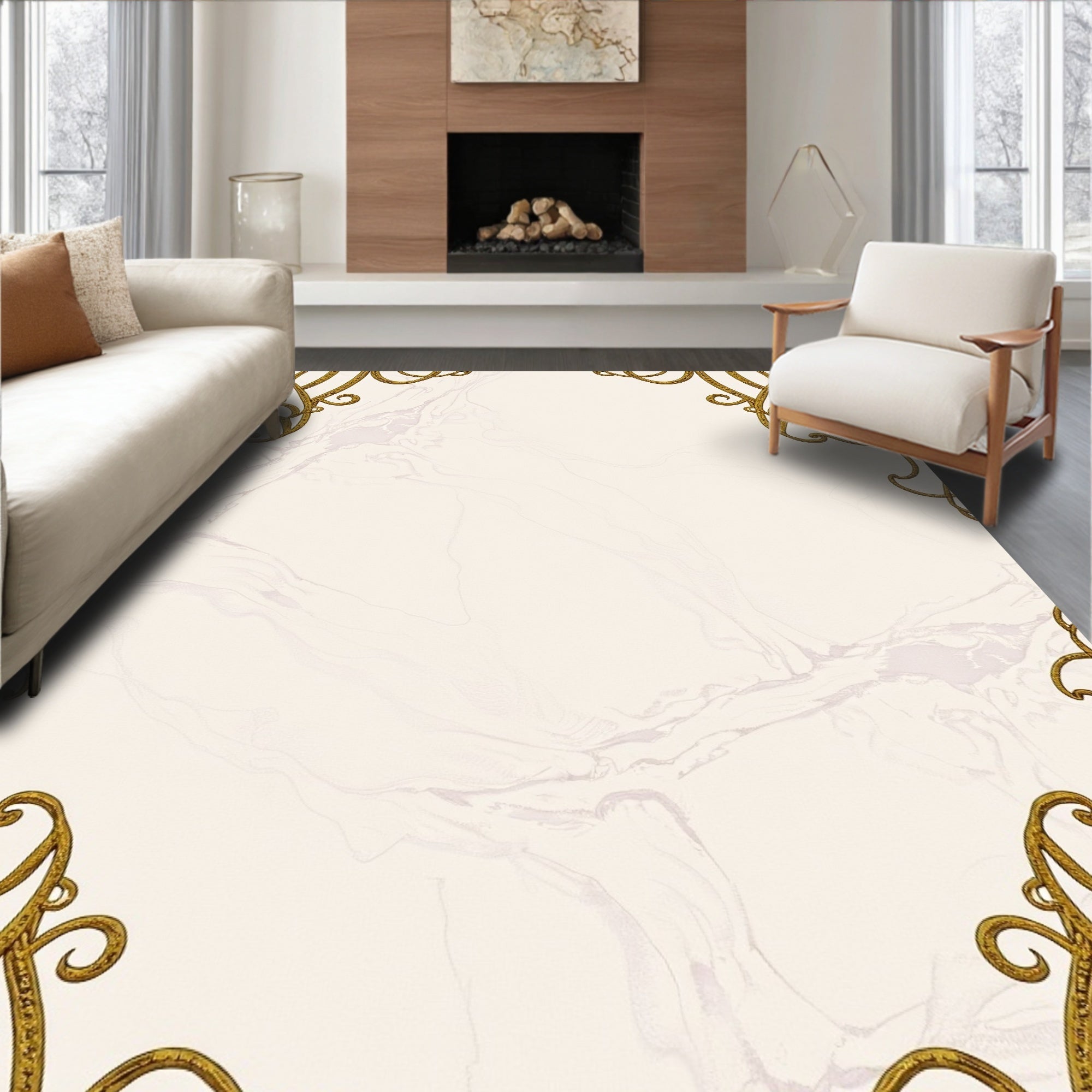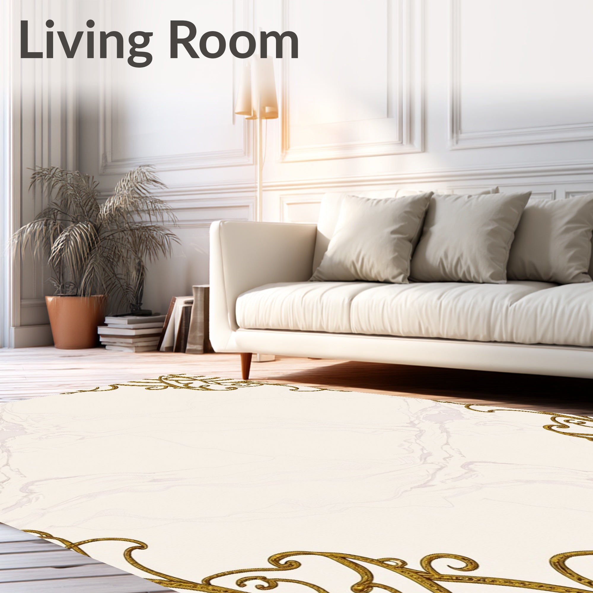 Flatwoven High Traffic Area Rug, Exquisite Ivory Treasure Radiant Enchanting Spectacular, Non Slip, Stain Resistant, Washable Area Rugs for Living Room, Bedroom (Gold) Overview: