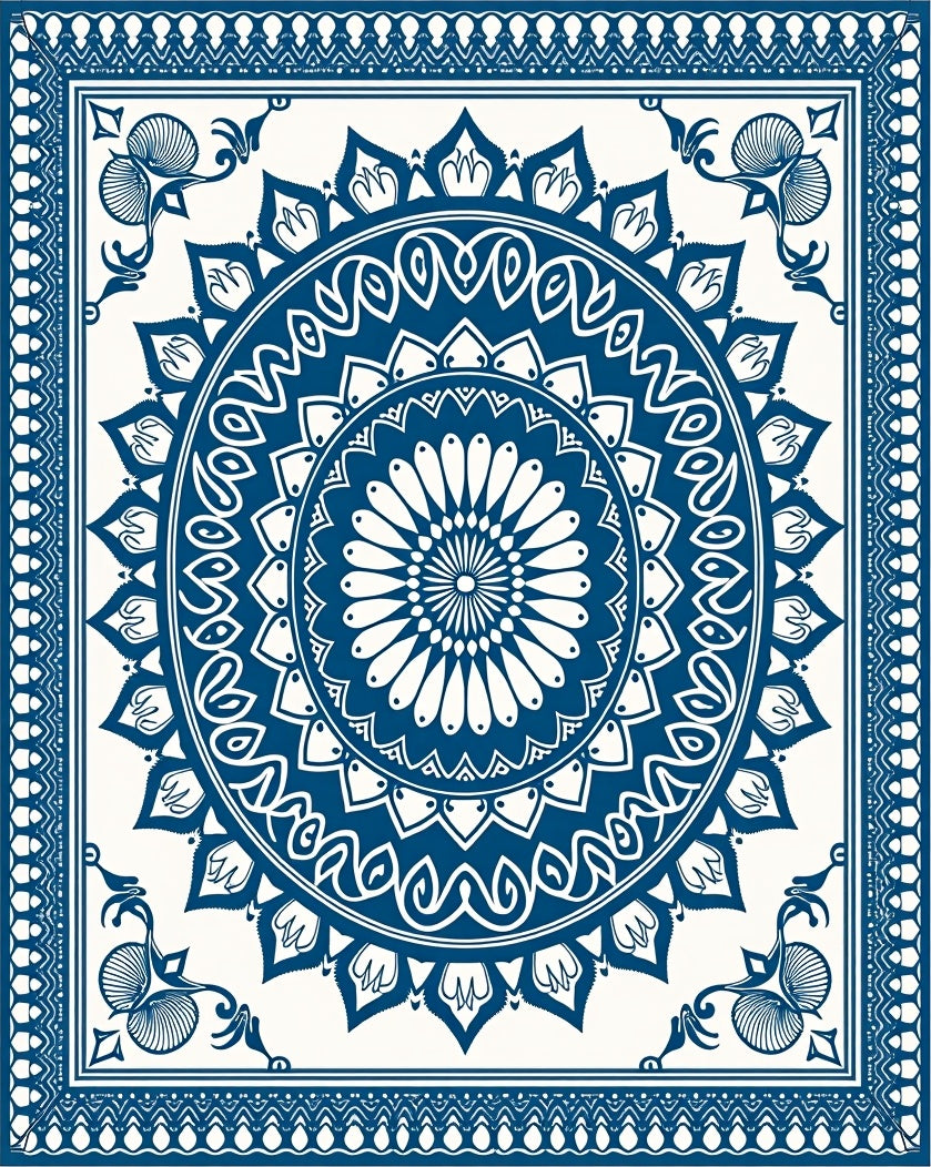 Exquisite Medallion Swirl Ornamental Radiant Decorative Accent (Blue)
