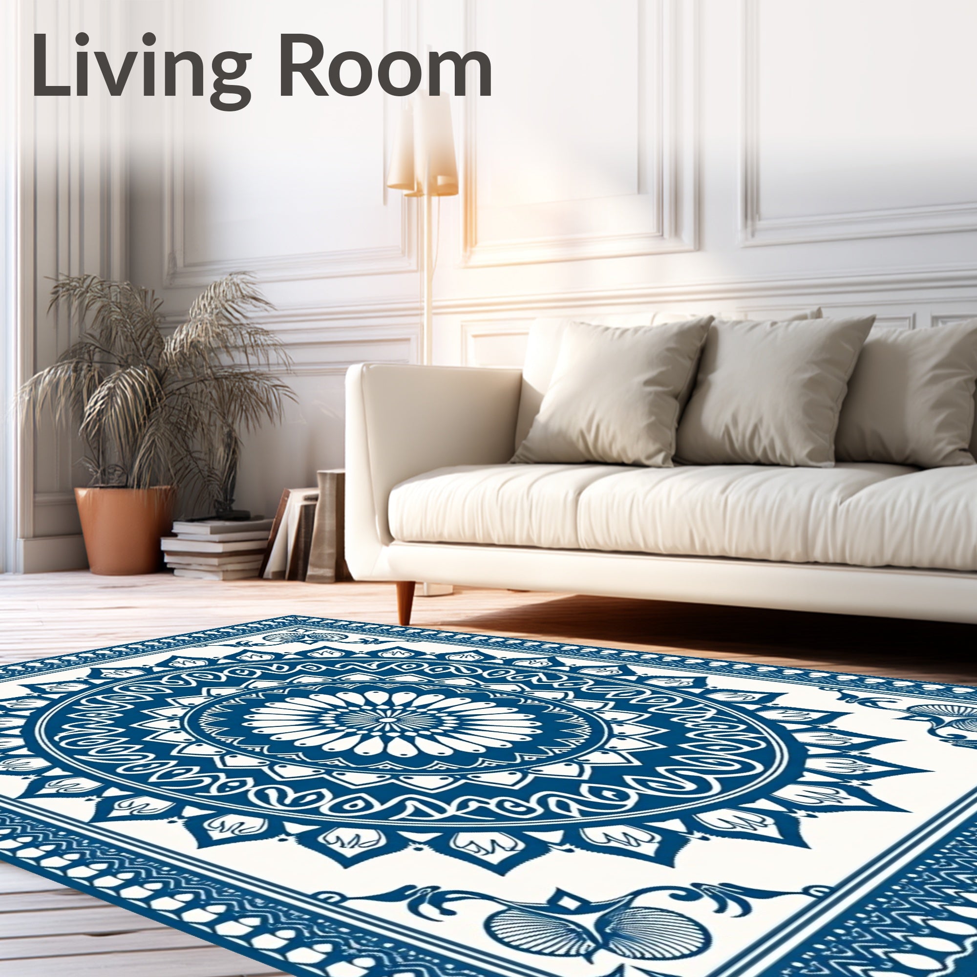 Flatwoven High Traffic Area Rug, Exquisite Medallion Swirl Ornamental Radiant Decorative Accent, Non Slip, Stain Resistant, Washable Area Rugs for Living Room, Bedroom (Blue) Overview: