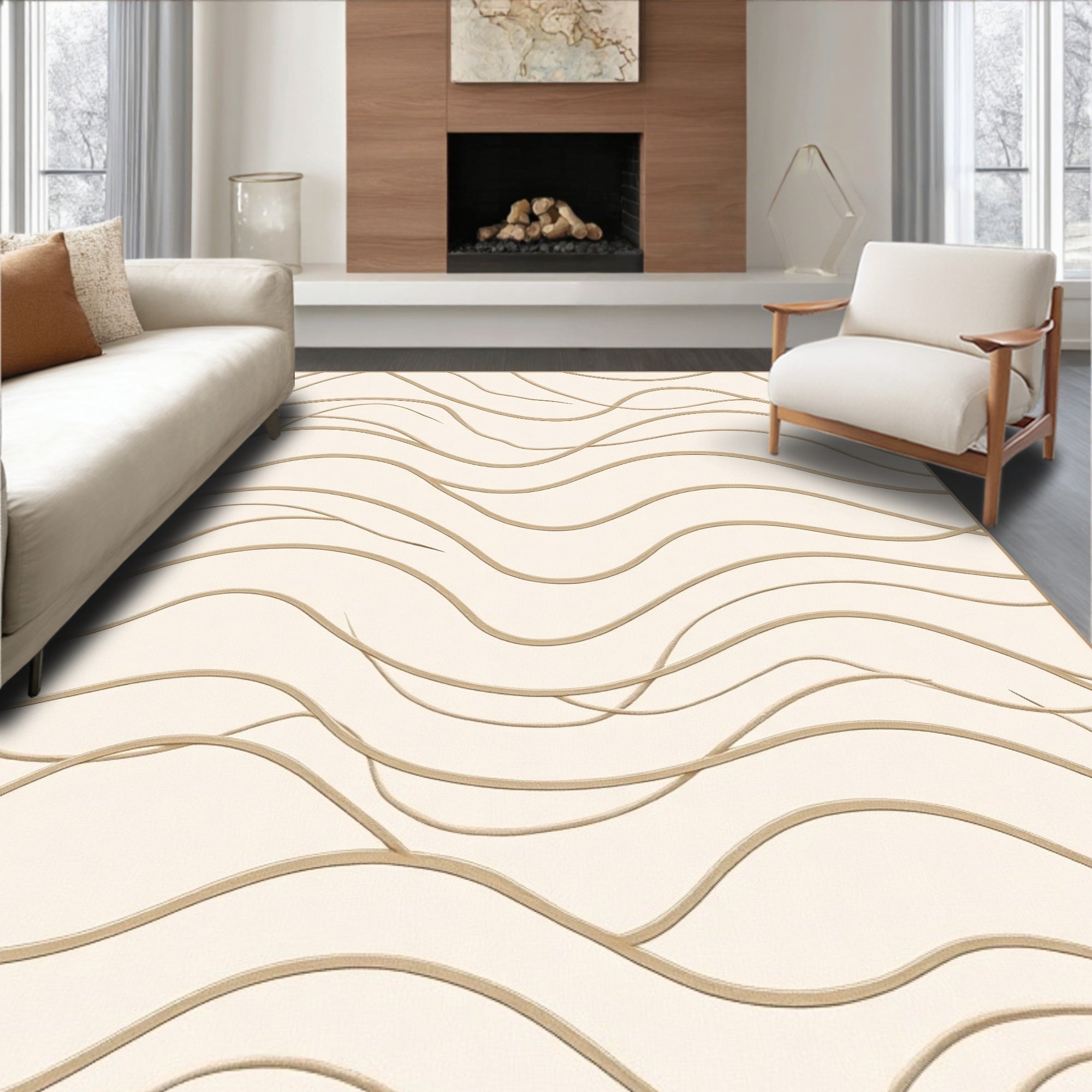 Flatwoven High Traffic Area Rug, Exquisite Silky Wave Tranquil Retreat, Non Slip, Stain Resistant, Washable Area Rugs for Living Room, Bedroom (Ivory) Overview: