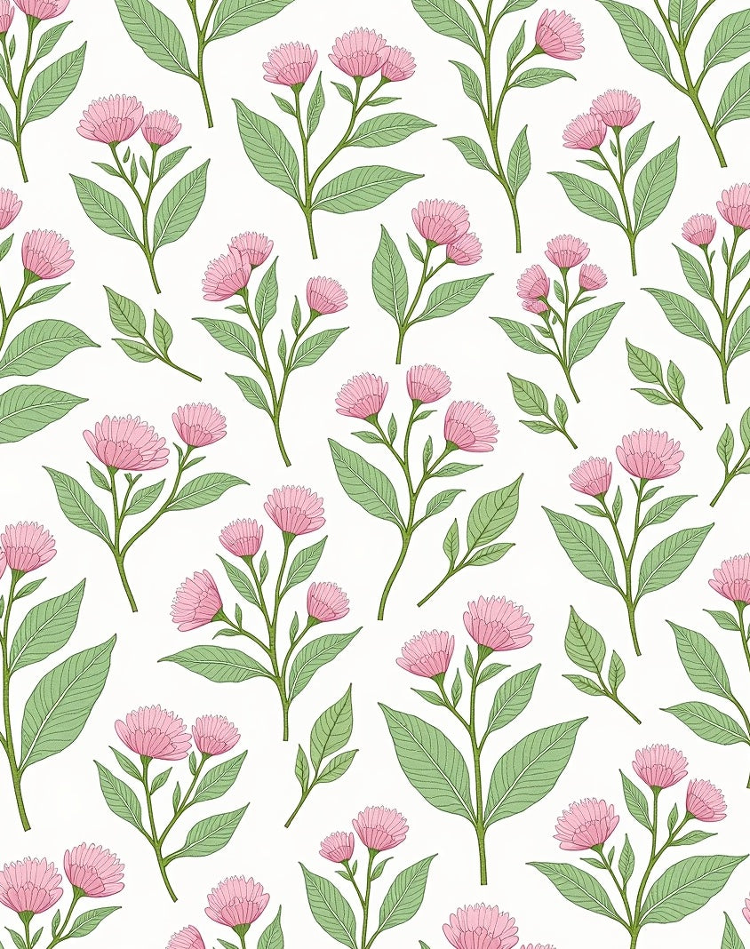 Farmhouse Botanical Print with Cottage Garden Florals (Pink)