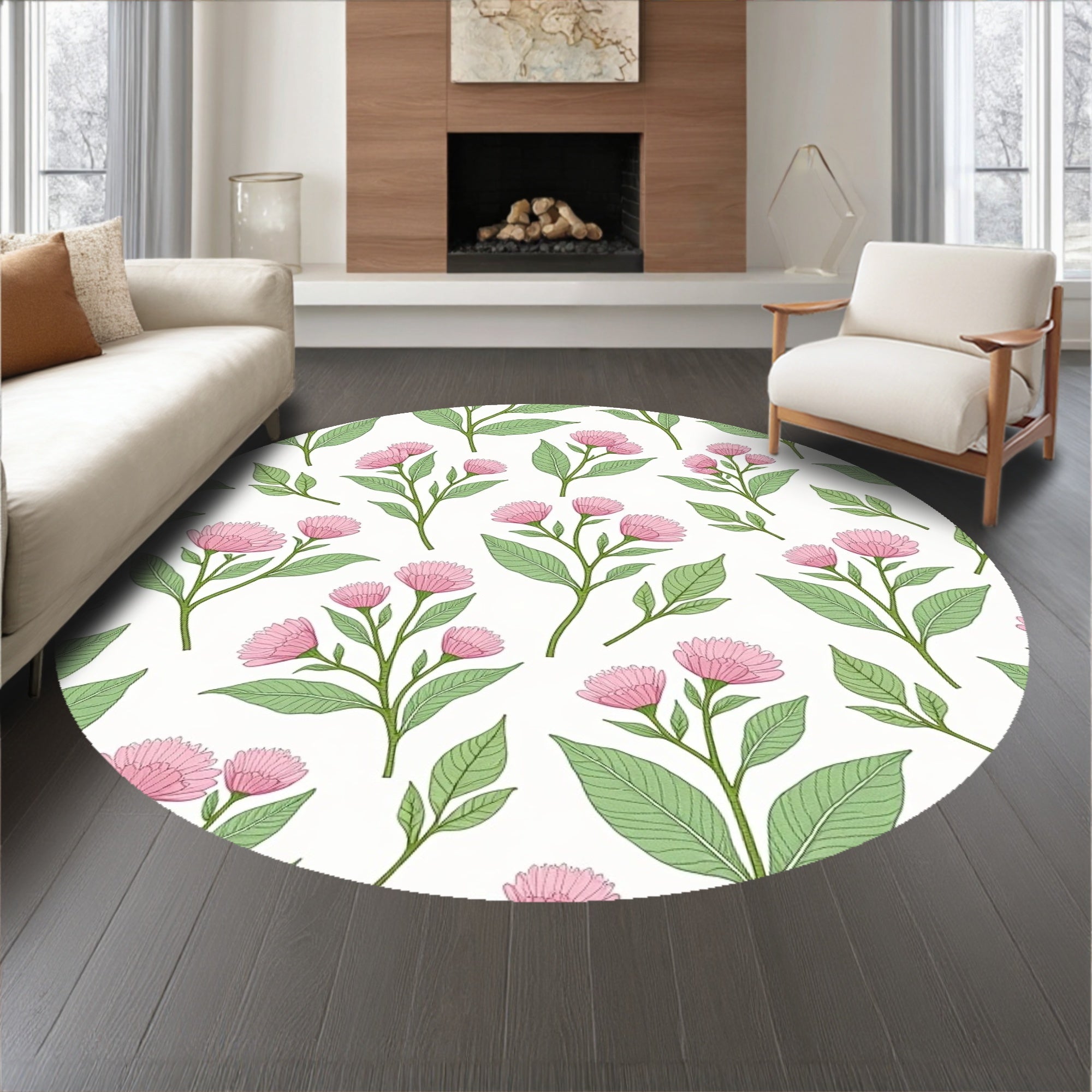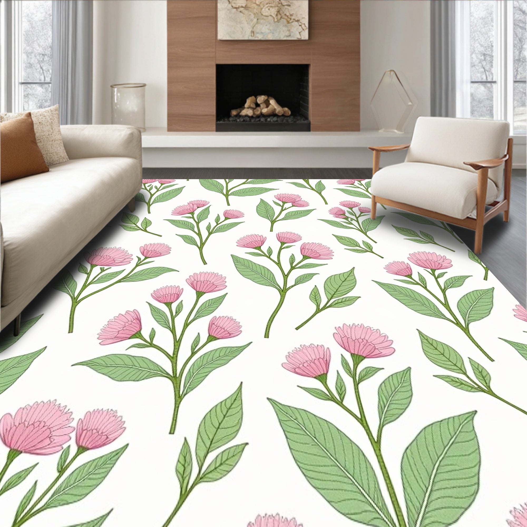Flatwoven High Traffic Area Rug, Farmhouse Botanical Print with Cottage Garden Florals, Non Slip, Stain Resistant, Washable Area Rugs for Living Room, Bedroom (Pink) Overview: