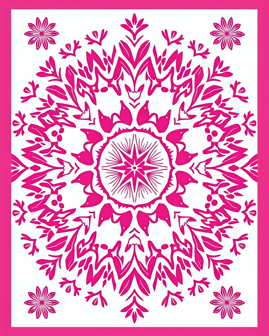 Floral Burst Design with Ornate Center Rosette (Pink)