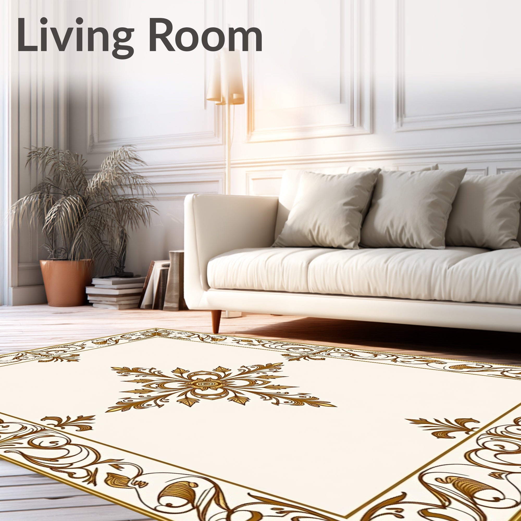 Flatwoven High Traffic Area Rug, Floral Damask Ornate Symmetrical, Non Slip, Stain Resistant, Washable Area Rugs for Living Room, Bedroom (Gold) Overview: