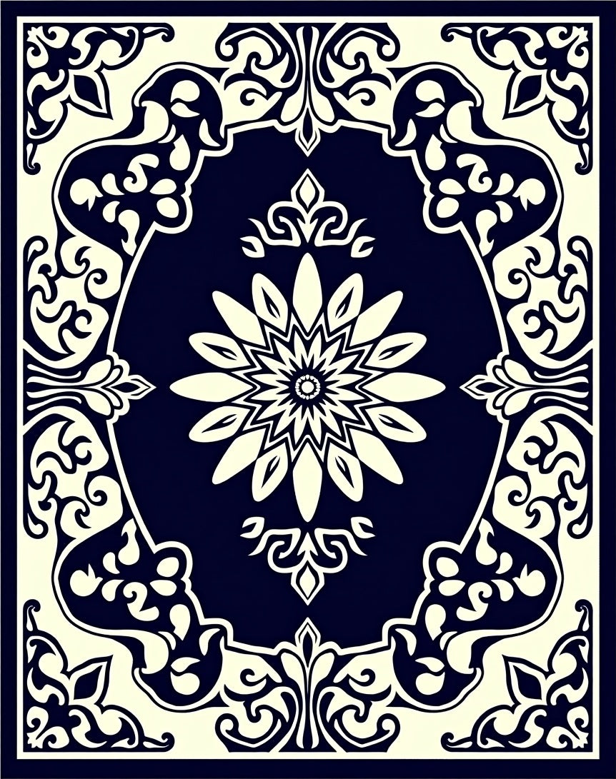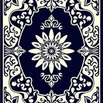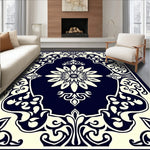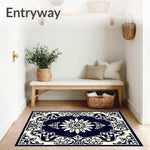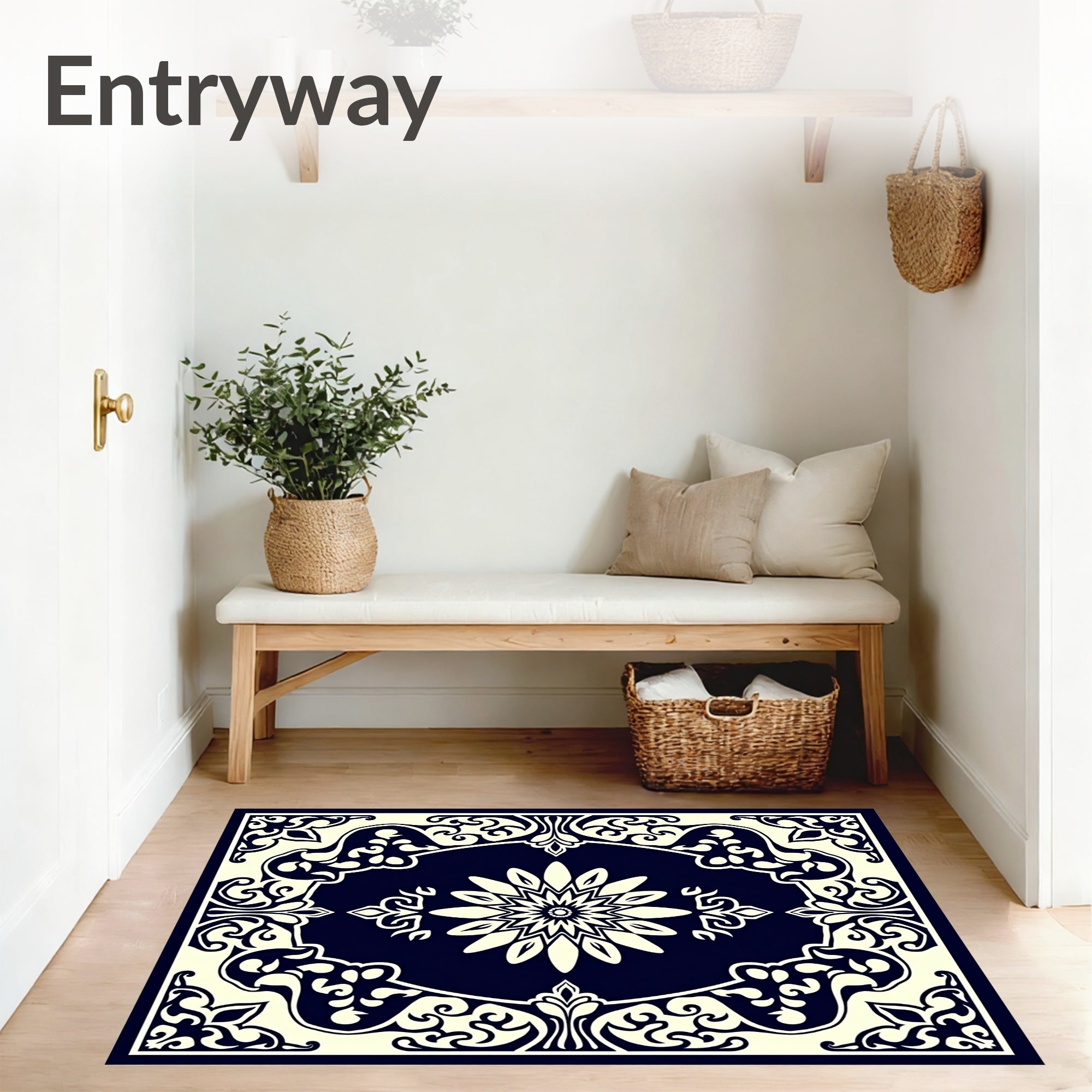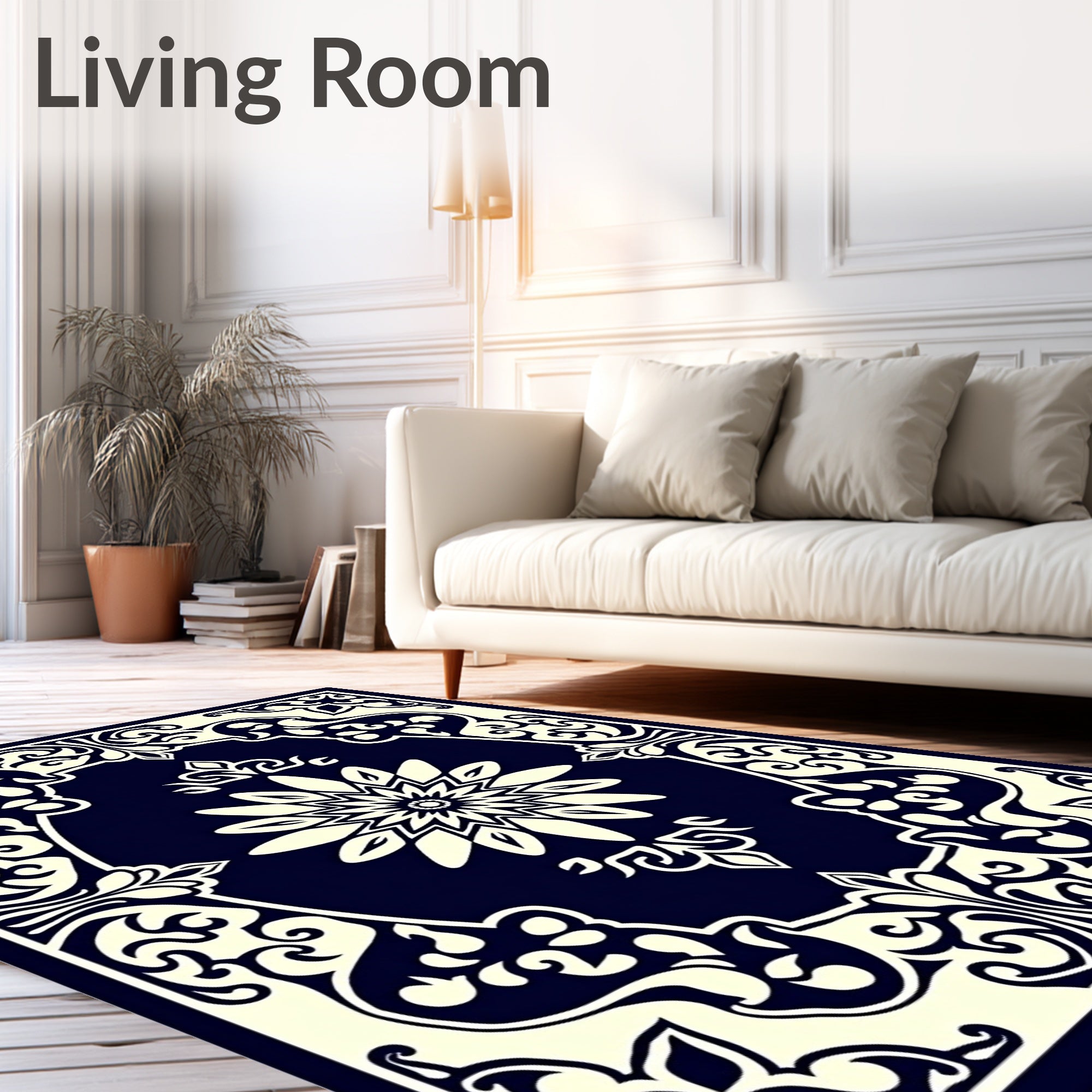 Flatwoven High Traffic Area Rug, Floral Scrollwork with Flourished Petal Silhouettes, Non Slip, Stain Resistant, Washable Area Rugs for Living Room, Bedroom (Blue) Overview: