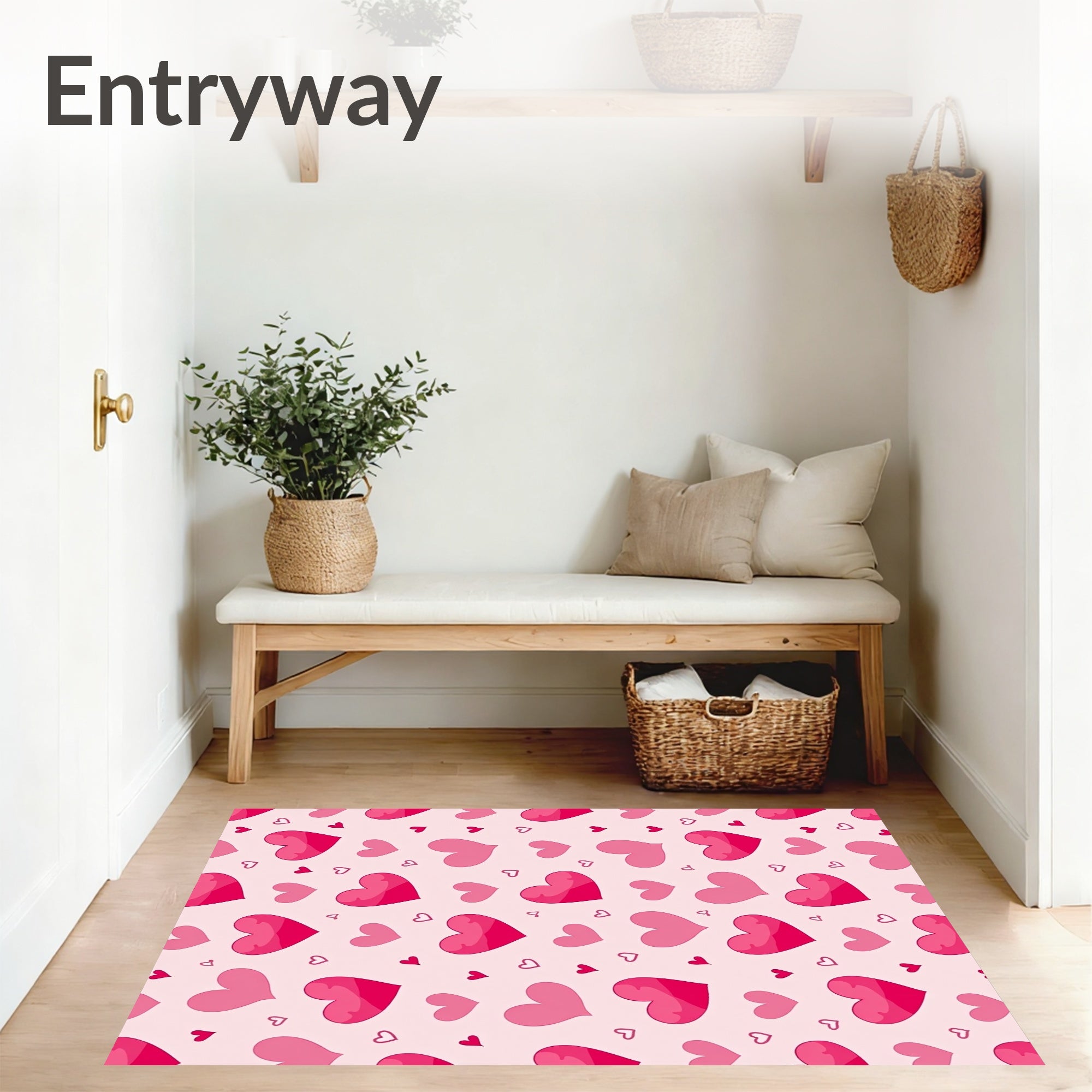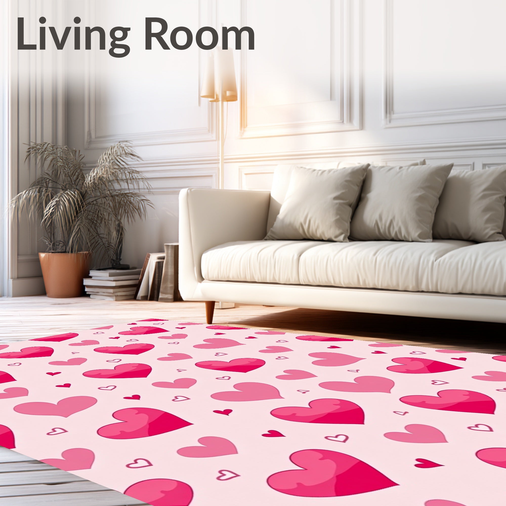 Flatwoven High Traffic Area Rug, Fluffy Chair Cover with Adorable Valentine Accents, Non Slip, Stain Resistant, Washable Area Rugs for Living Room, Bedroom (Pink) Overview: