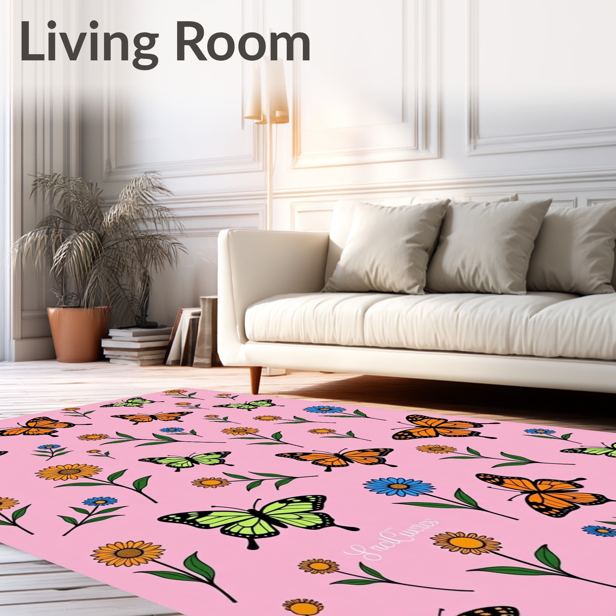 Flatwoven High Traffic Area Rug, Fluttering Majesty Sophisticated Wonder, Non Slip, Stain Resistant, Washable Area Rugs for Living Room, Bedroom (Pink) Overview: