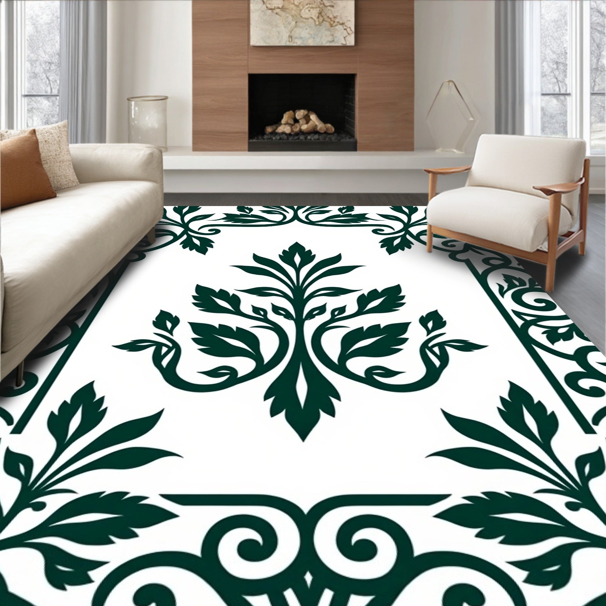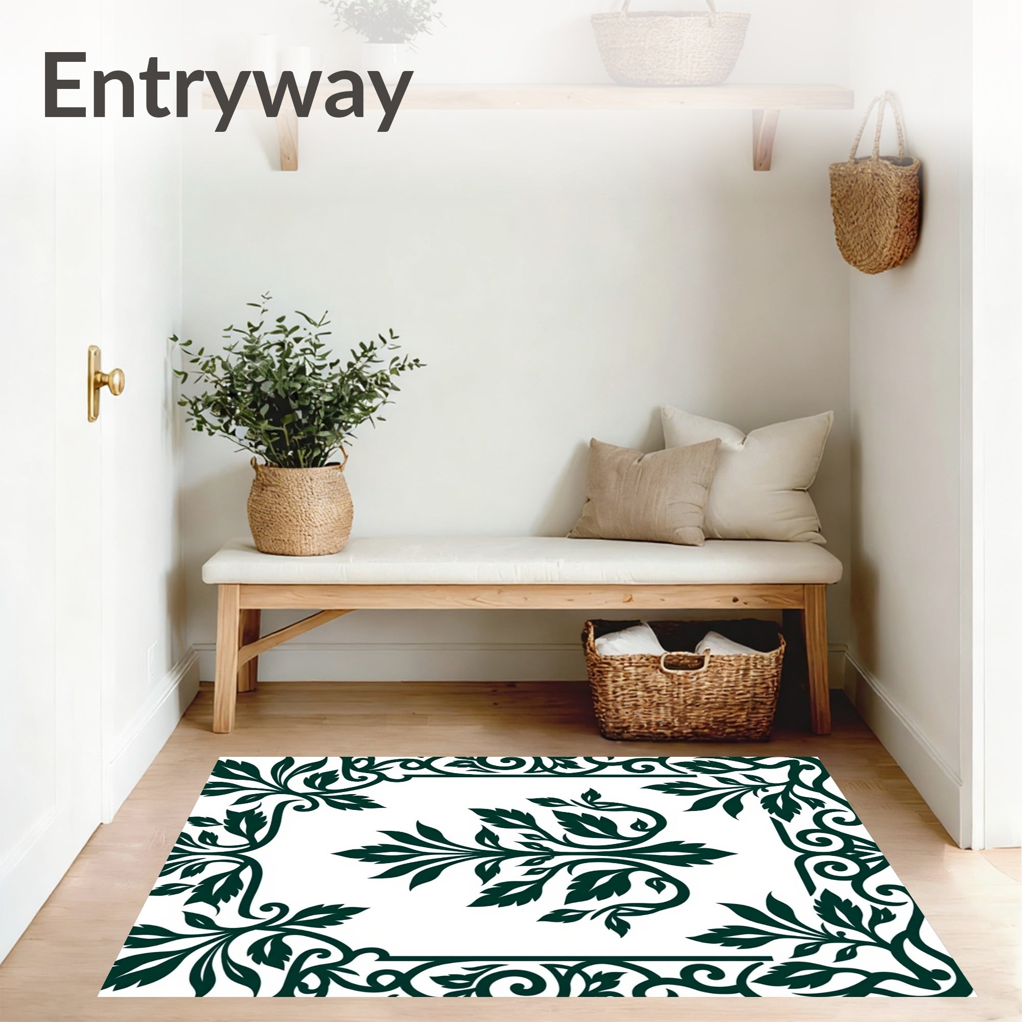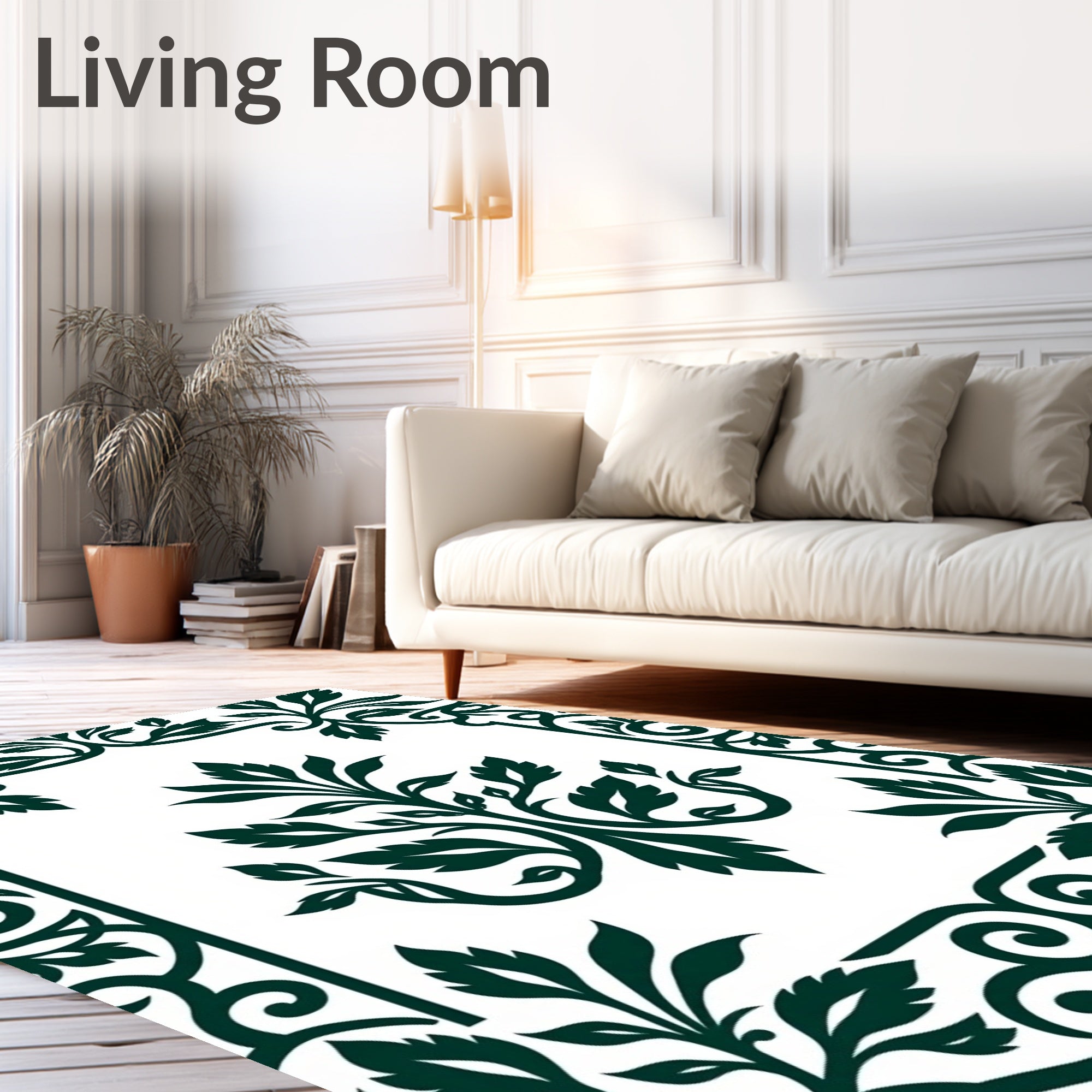 Flatwoven High Traffic Area Rug, Foliage Damask Ornate Treasure, Non Slip, Stain Resistant, Washable Area Rugs for Living Room, Bedroom (Green) Overview:
