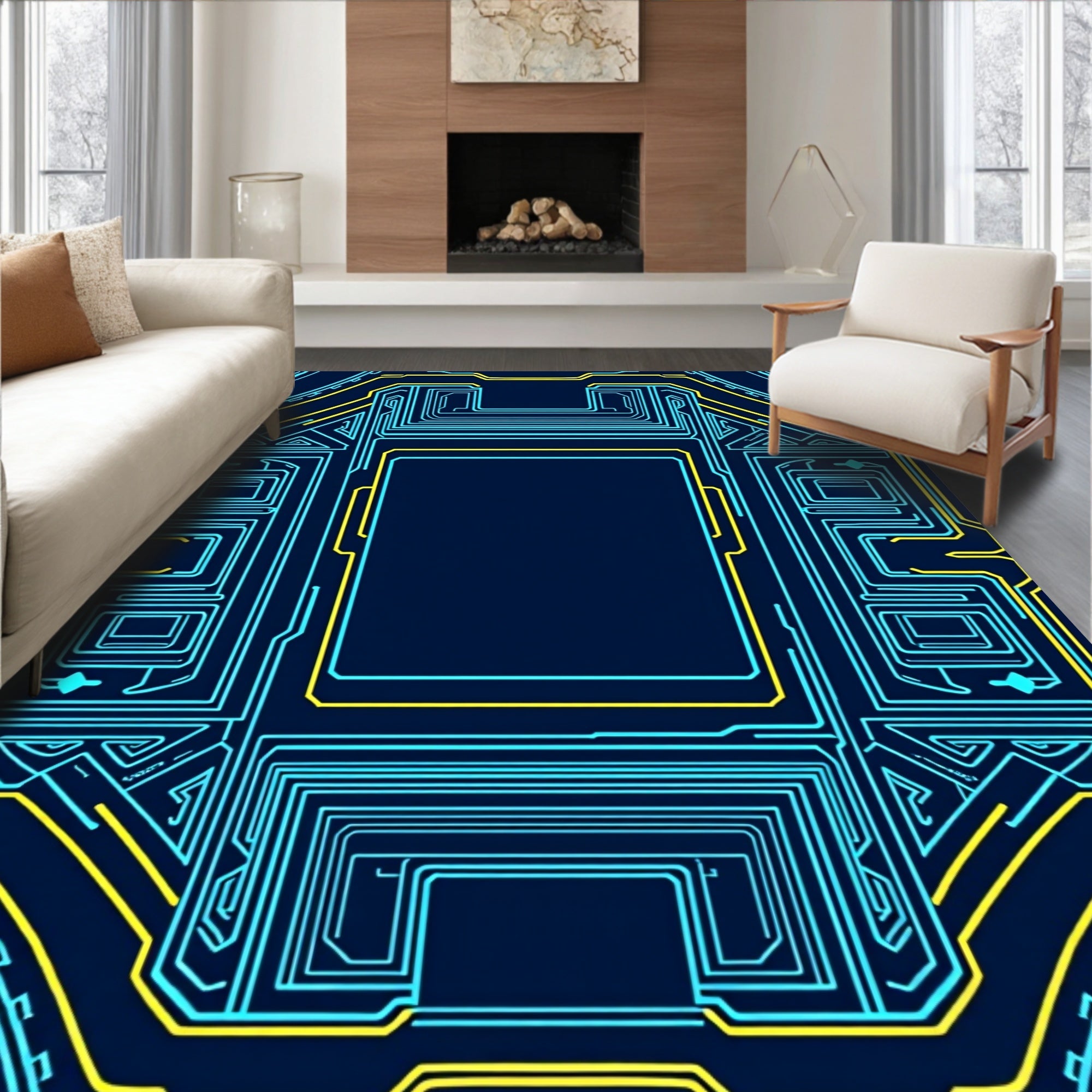 Flatwoven High Traffic Area Rug, Futuristic Pixelated Strategy Board Maze Labyrinth, Non Slip, Stain Resistant, Washable Area Rugs for Living Room, Bedroom (Blue) Overview: