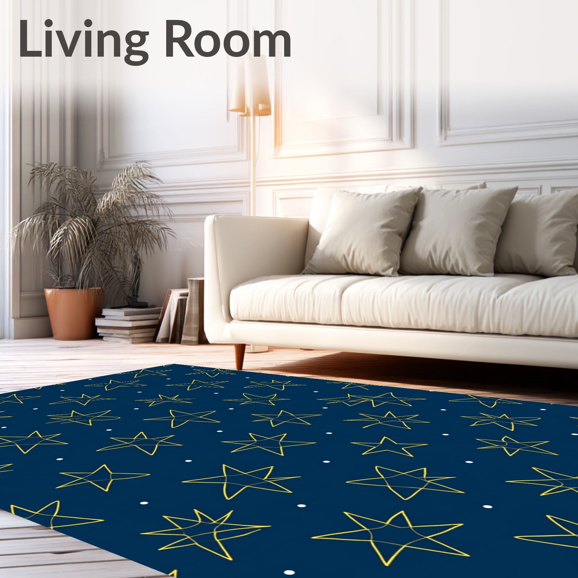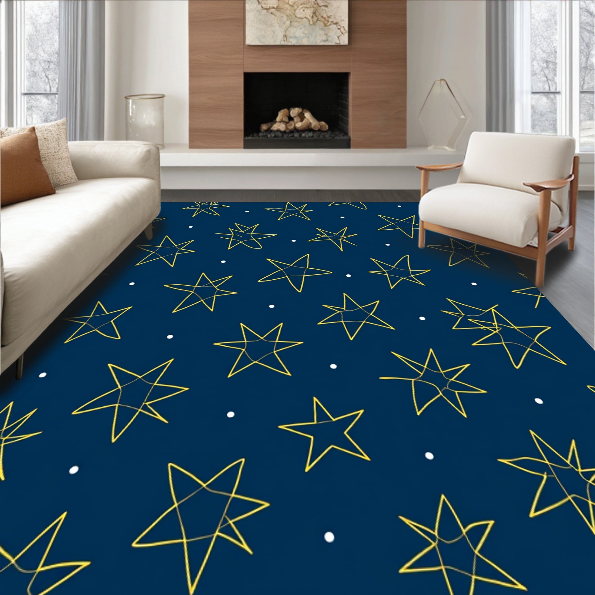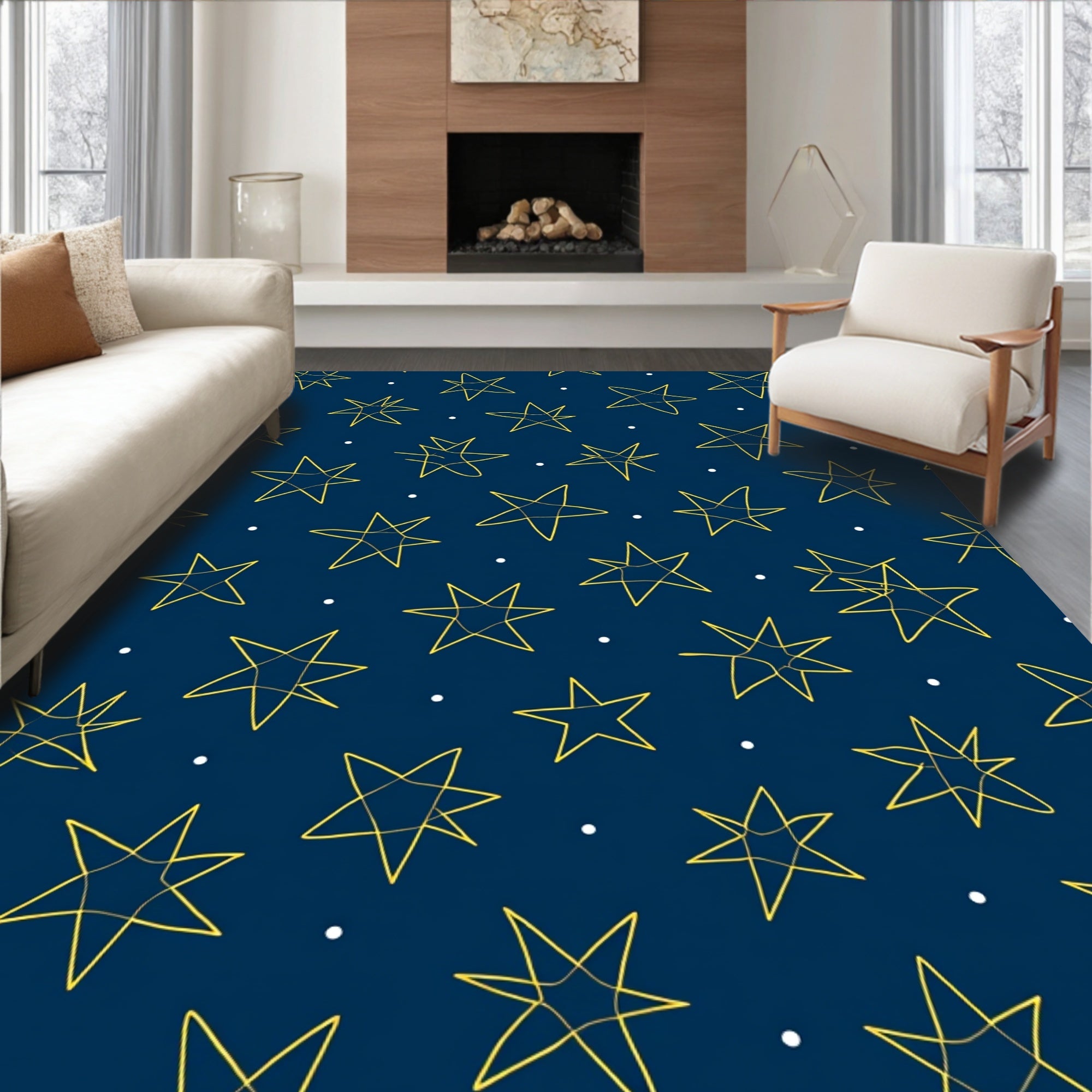 Flatwoven High Traffic Area Rug, Galactic Constellation Map with Interlocking Motifs, Non Slip, Stain Resistant, Washable Area Rugs for Living Room, Bedroom (Blue) Overview: