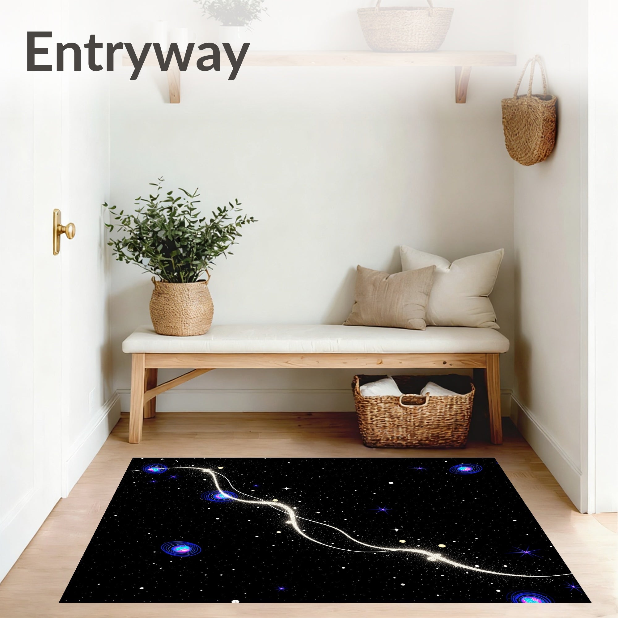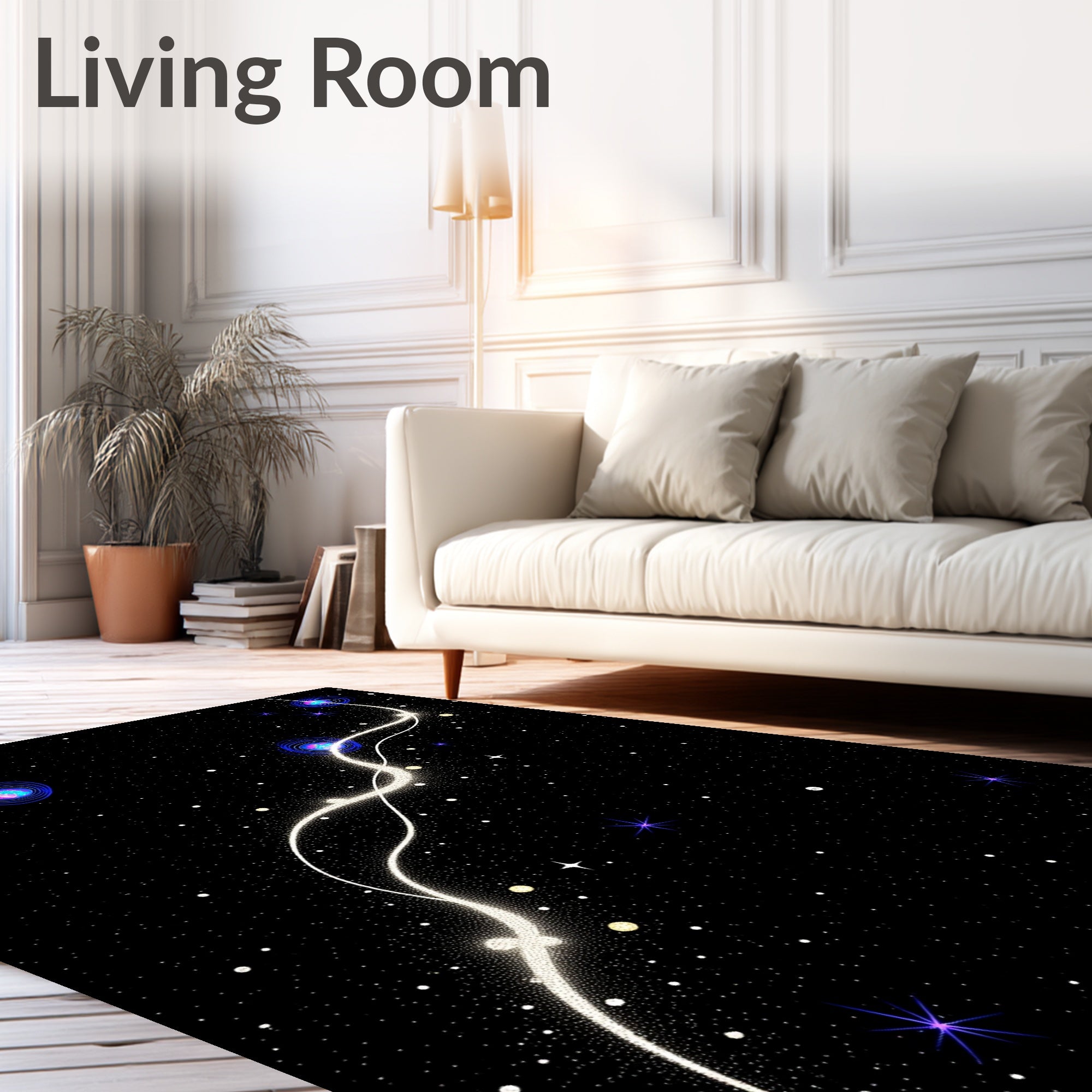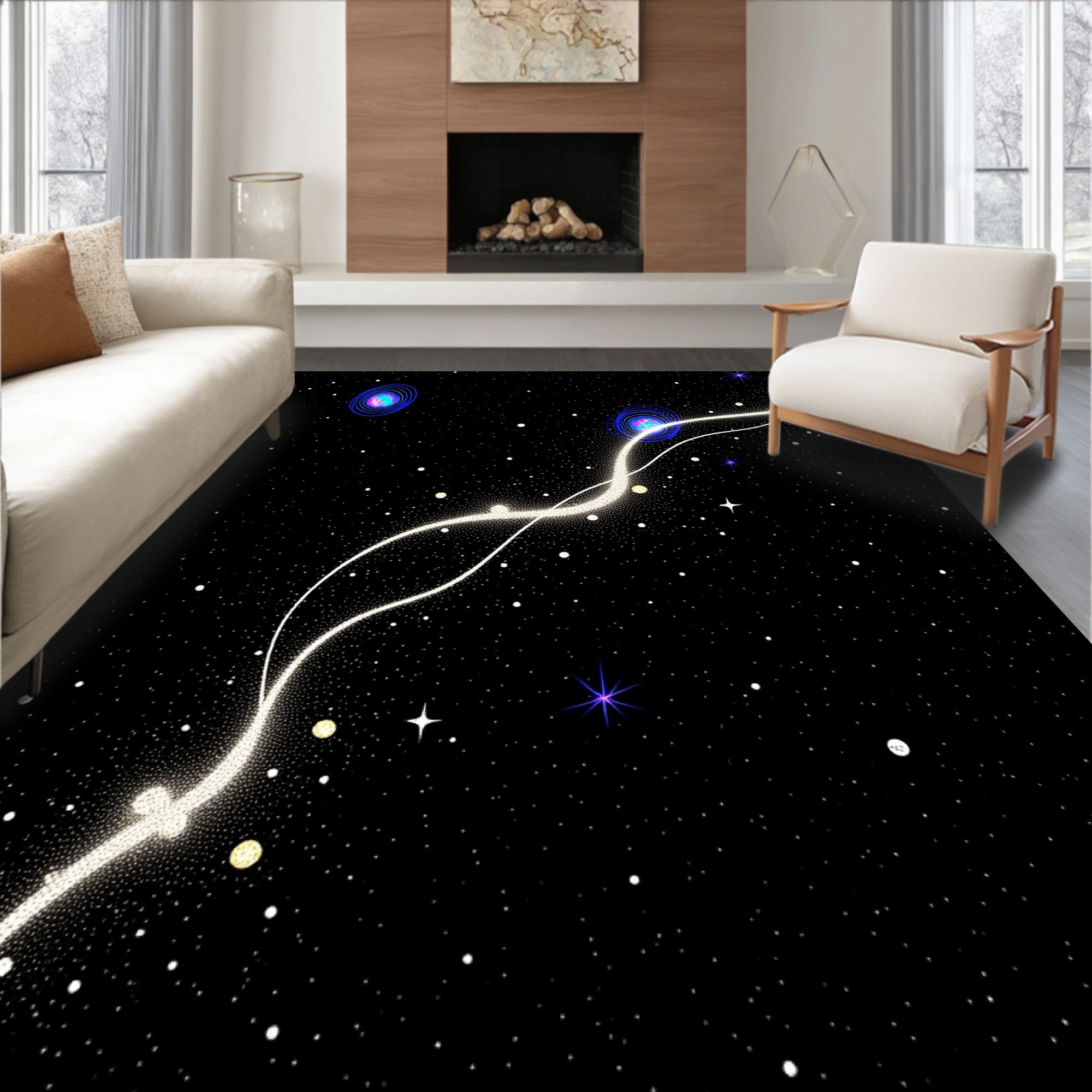 Flatwoven High Traffic Area Rug, Galactic Dreams Stardust Pathway, Non Slip, Stain Resistant, Washable Area Rugs for Living Room, Bedroom (Black) Overview: