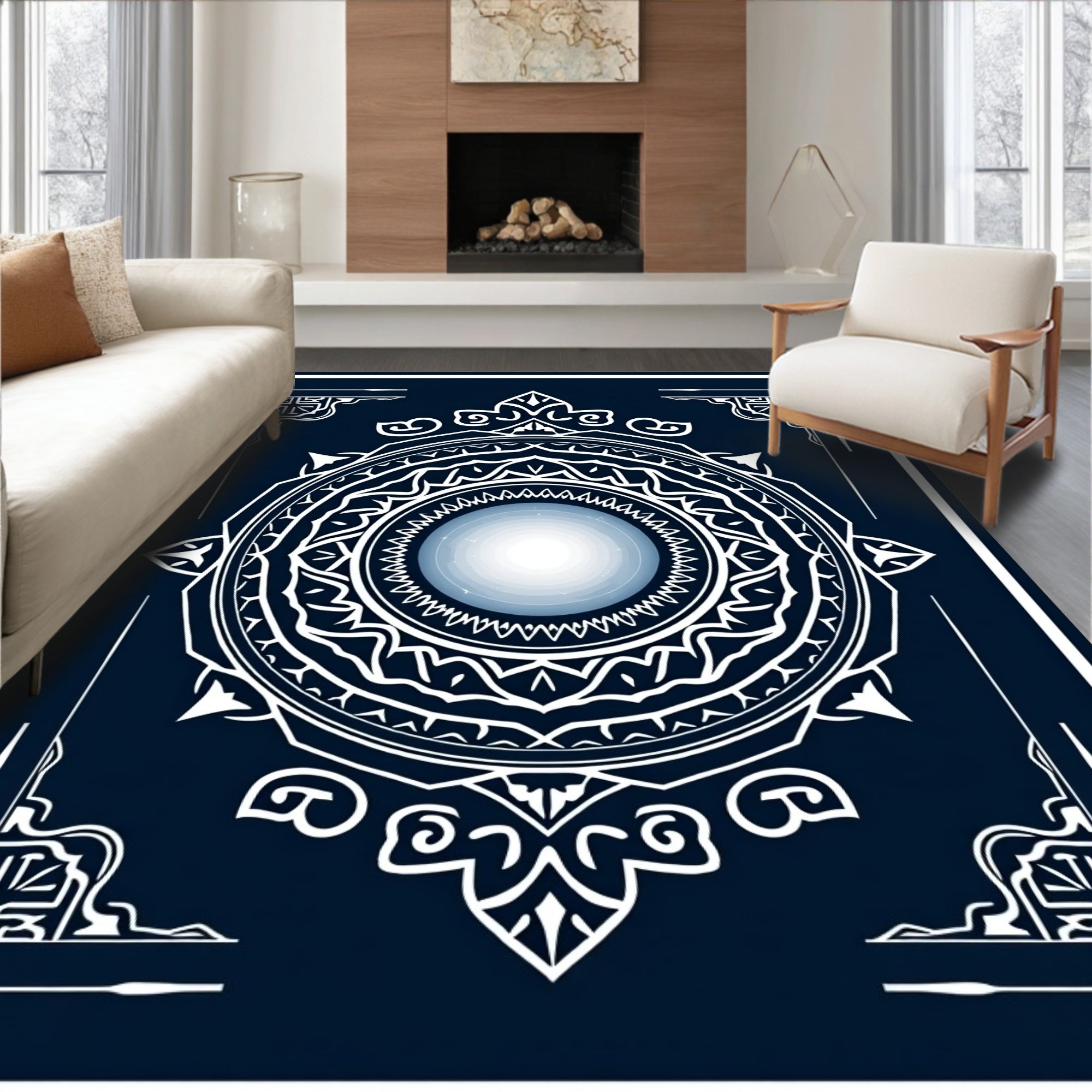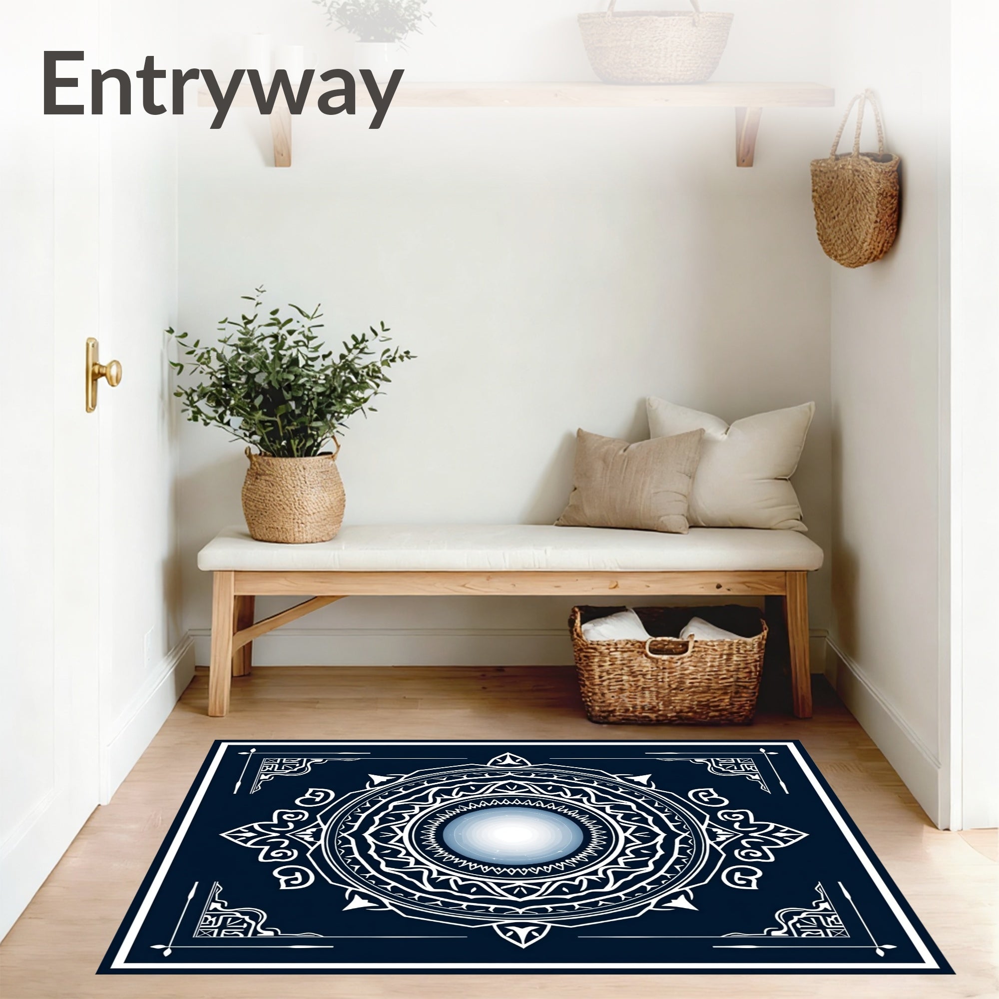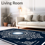 Flatwoven High Traffic Area Rug, Galactic Eclipse with Interlocking Astral, Non Slip, Stain Resistant, Washable Area Rugs for Living Room, Bedroom (Blue) Overview: