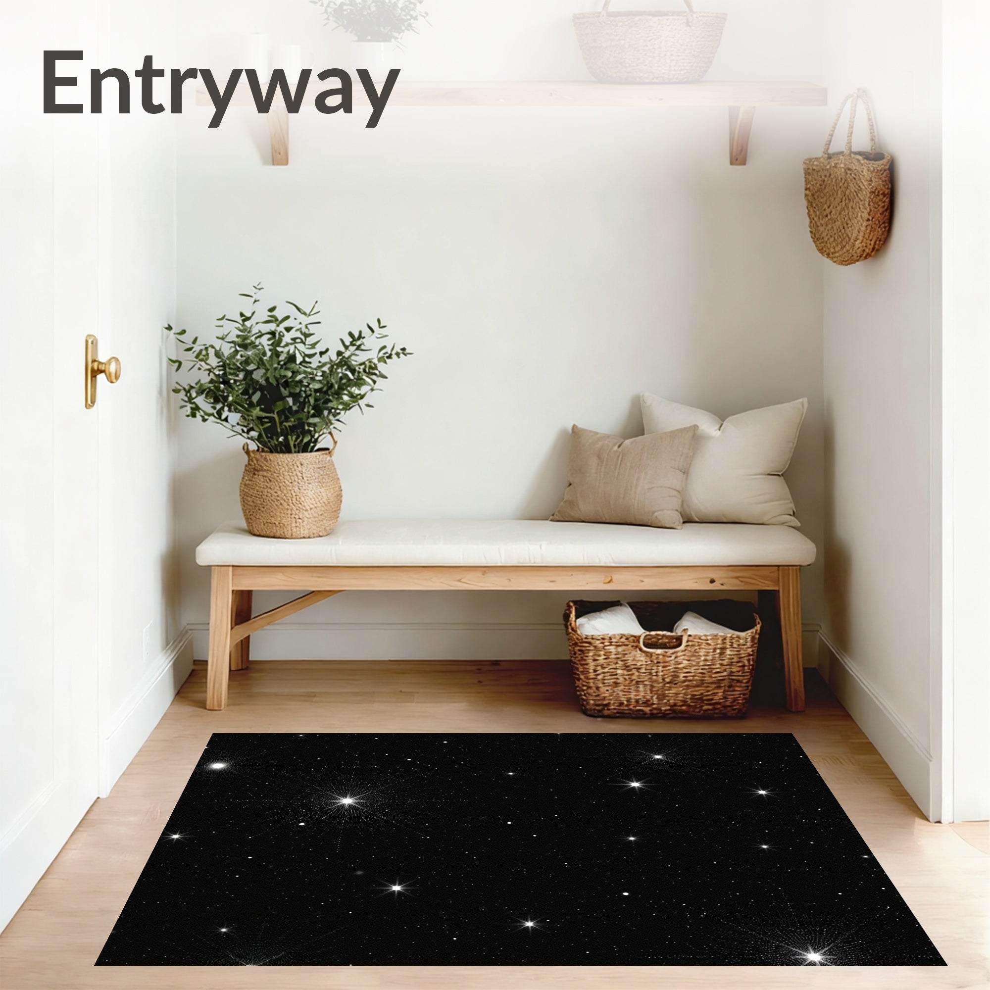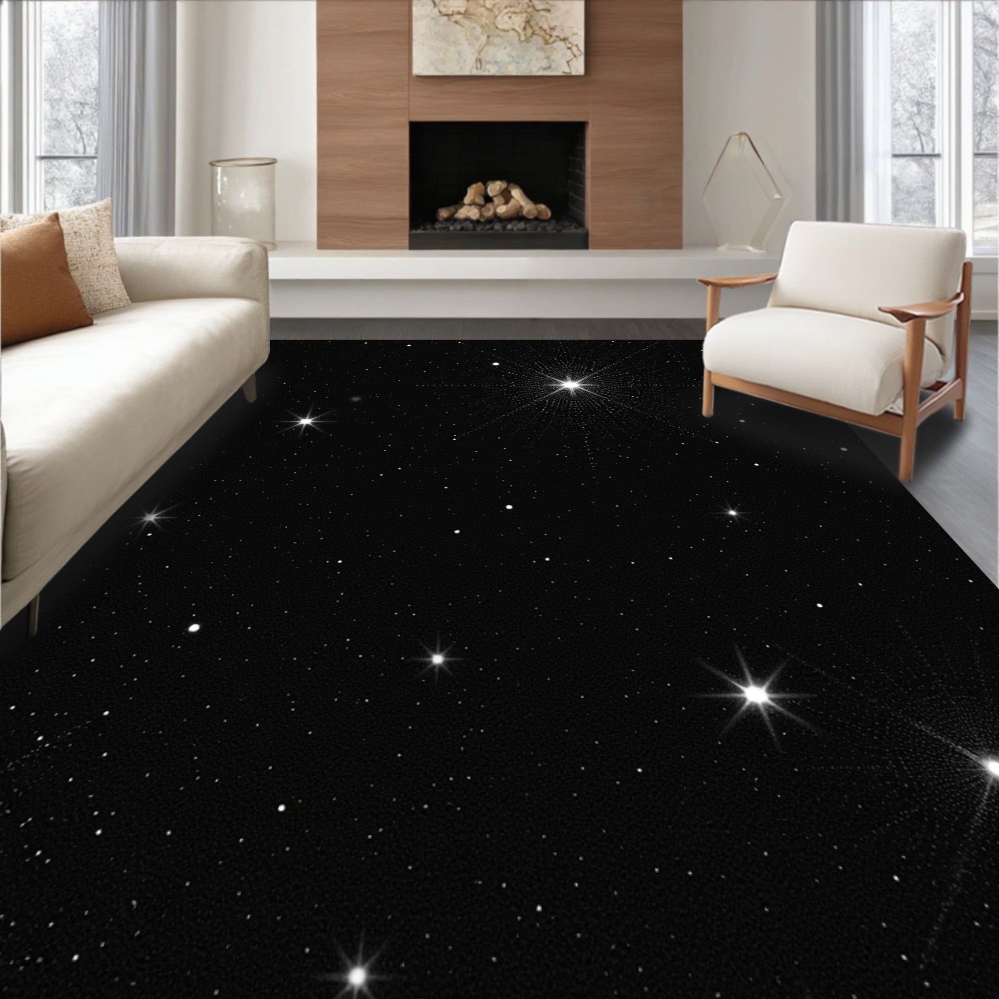 Flatwoven High Traffic Area Rug, Galactic Wonder Sparkling Heavenly Elegant Adornment, Non Slip, Stain Resistant, Washable Area Rugs for Living Room, Bedroom (Black) Overview: