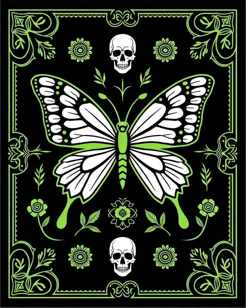 Gothic Skull Statement with Dark Botanical Print (Black)
