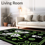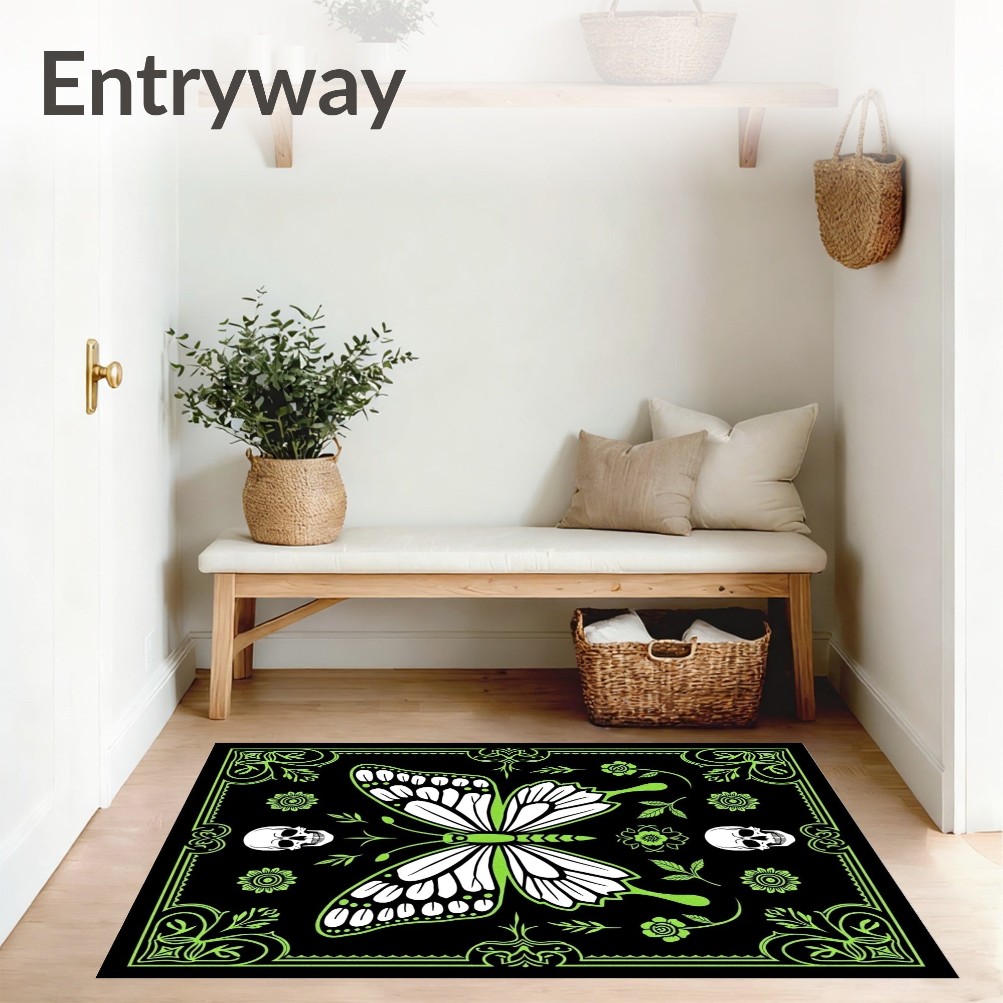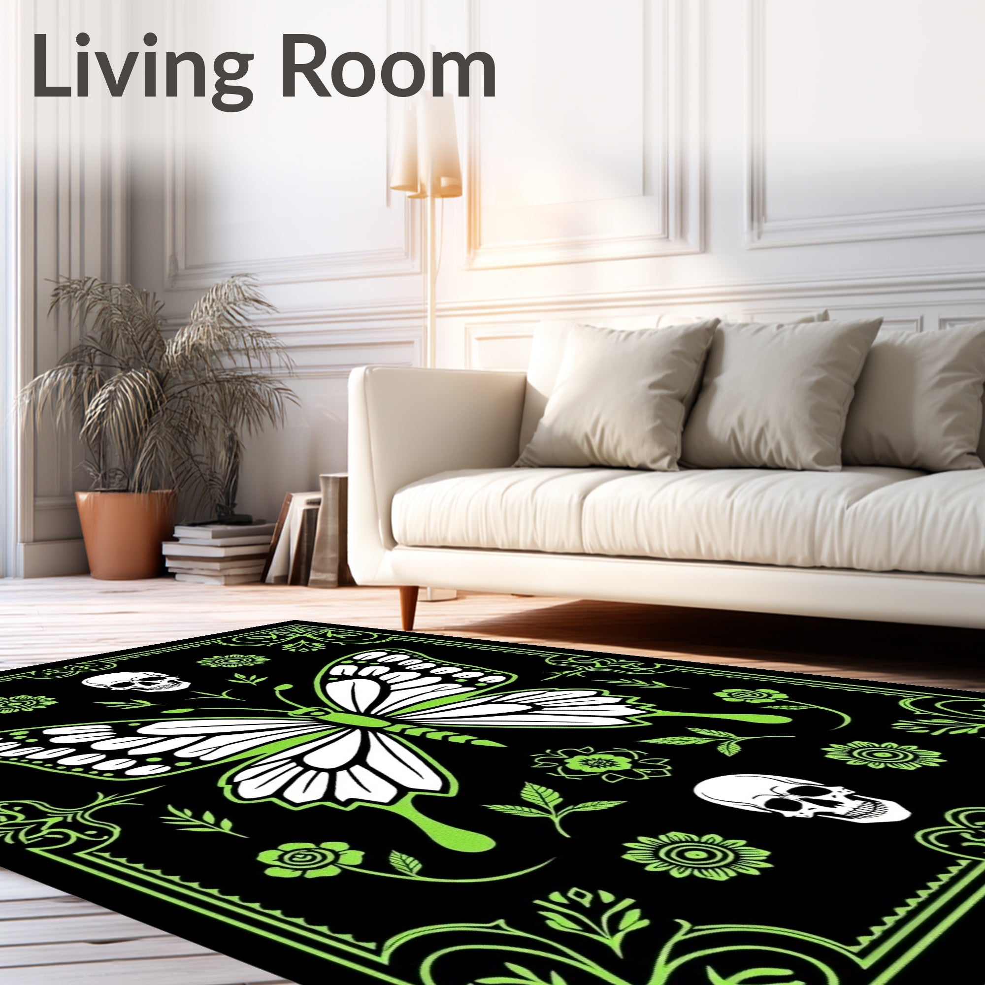 Flatwoven High Traffic Area Rug, Gothic Skull Statement with Dark Botanical Print, Non Slip, Stain Resistant, Washable Area Rugs for Living Room, Bedroom (Black) Overview: