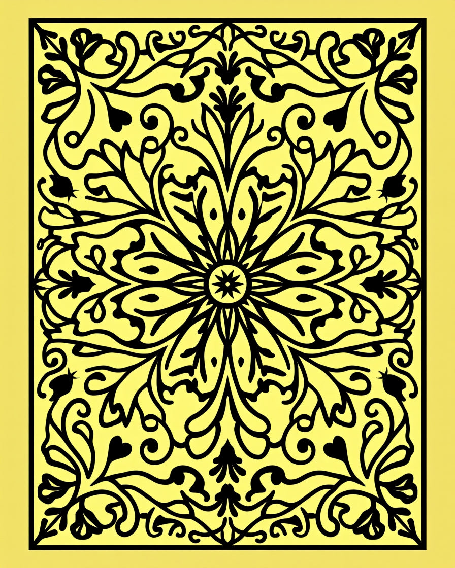 Graceful Medallion Vine Decorative Stunning Charming Ornate (Yellow)