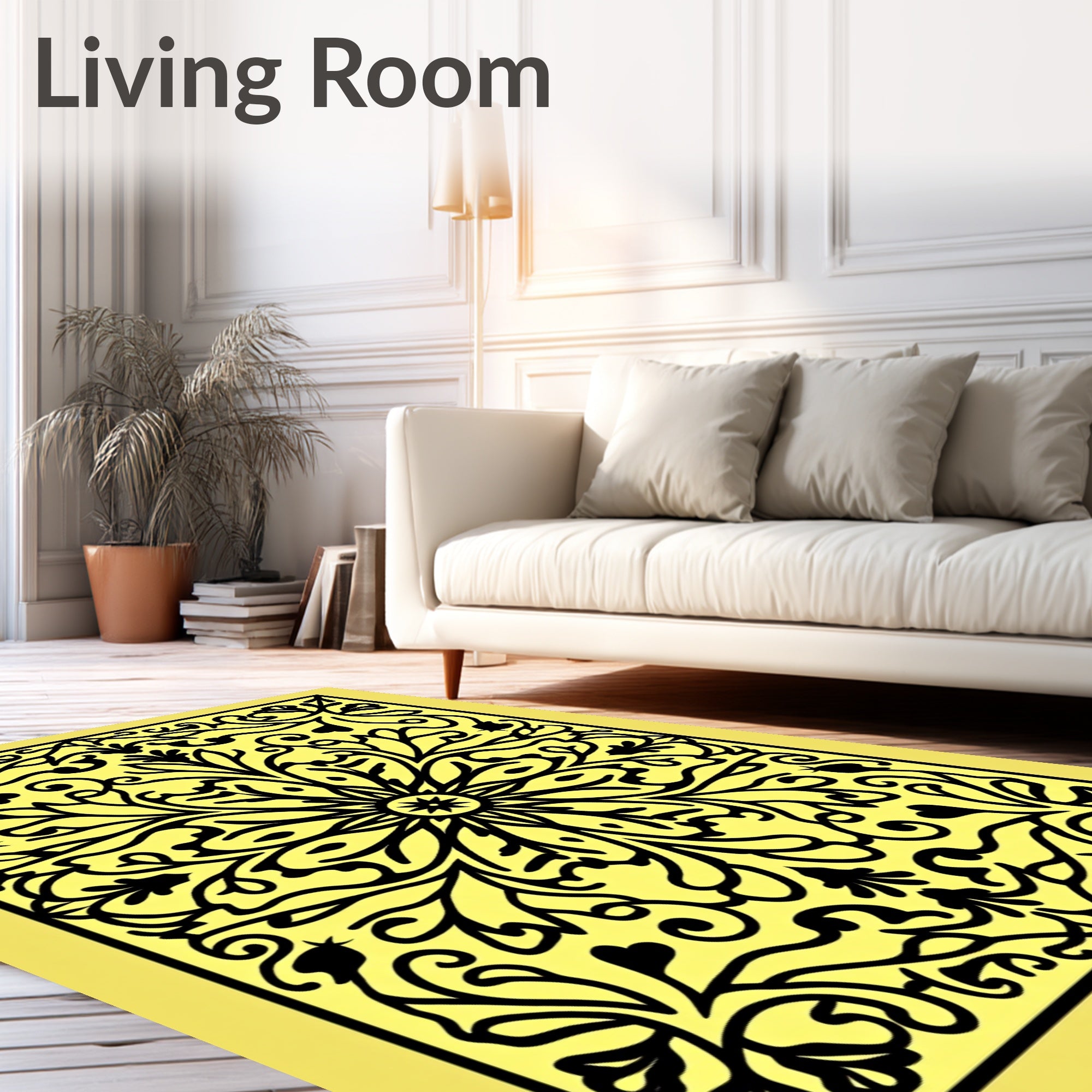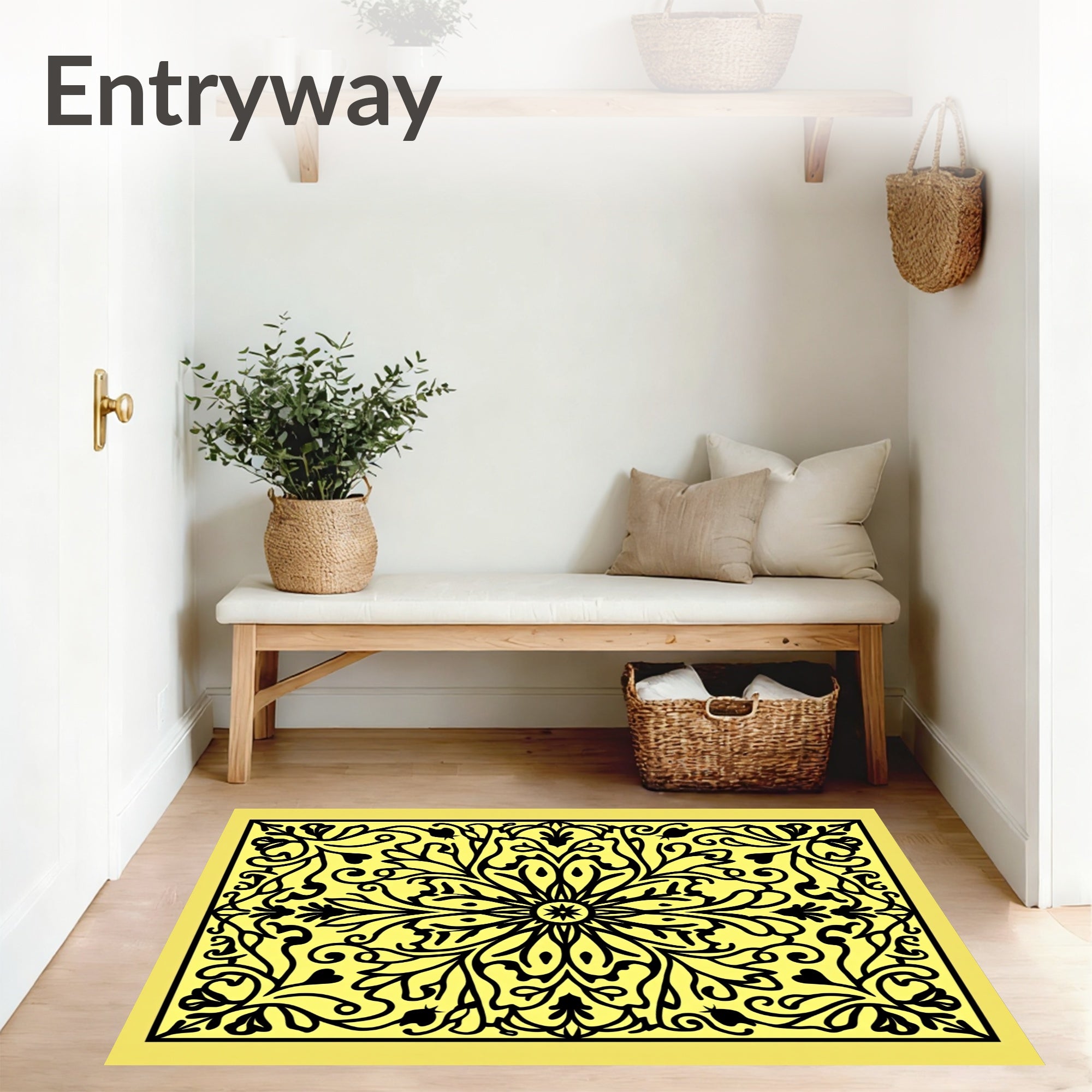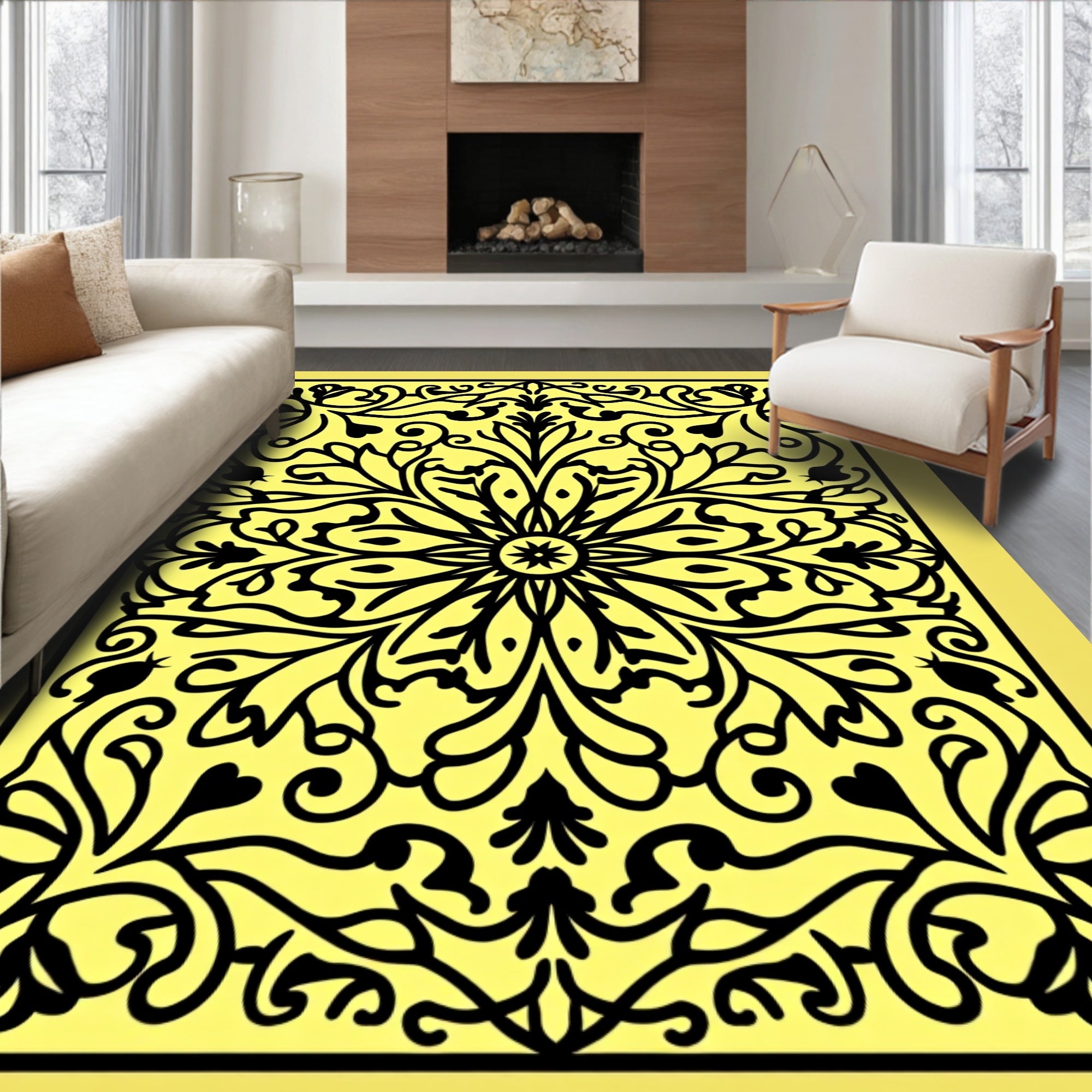 Flatwoven High Traffic Area Rug, Graceful Medallion Vine Decorative Stunning Charming Ornate, Non Slip, Stain Resistant, Washable Area Rugs for Living Room, Bedroom (Yellow) Overview: