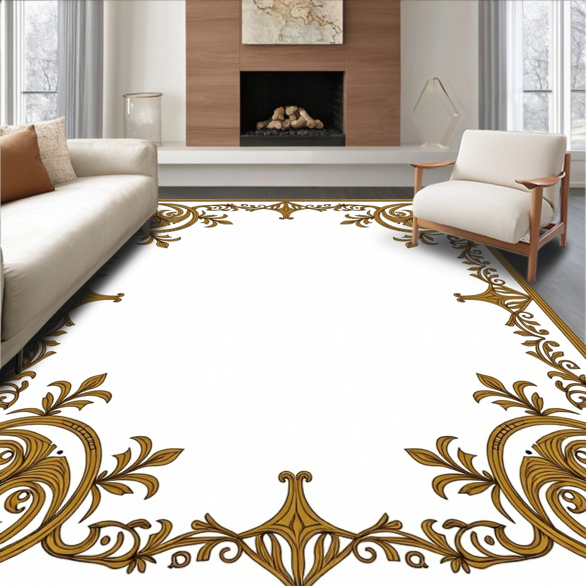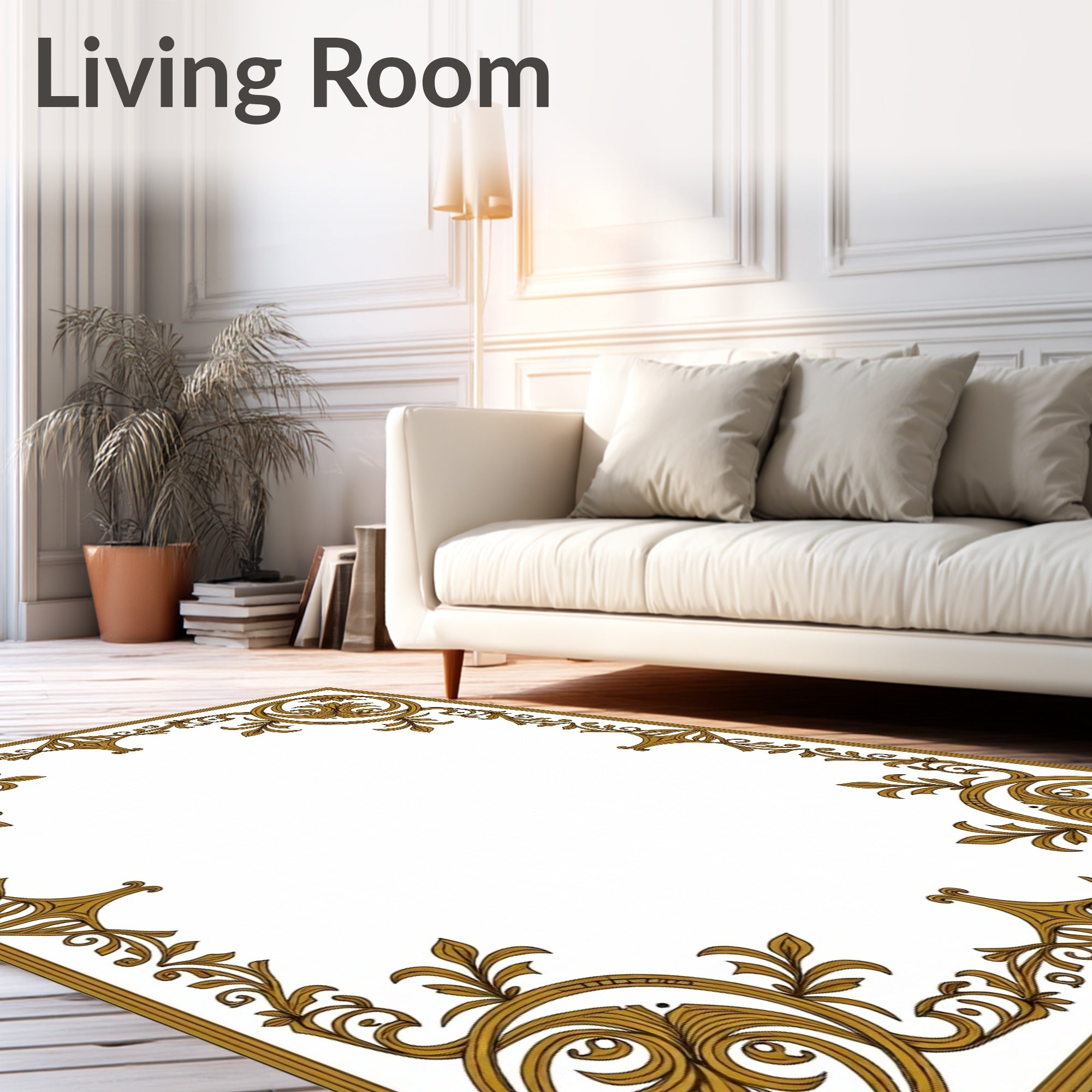 Flatwoven High Traffic Area Rug, Grand Millennial Laurel Bouquet with Baroque Flourishes, Non Slip, Stain Resistant, Washable Area Rugs for Living Room, Bedroom (Gold) Overview: