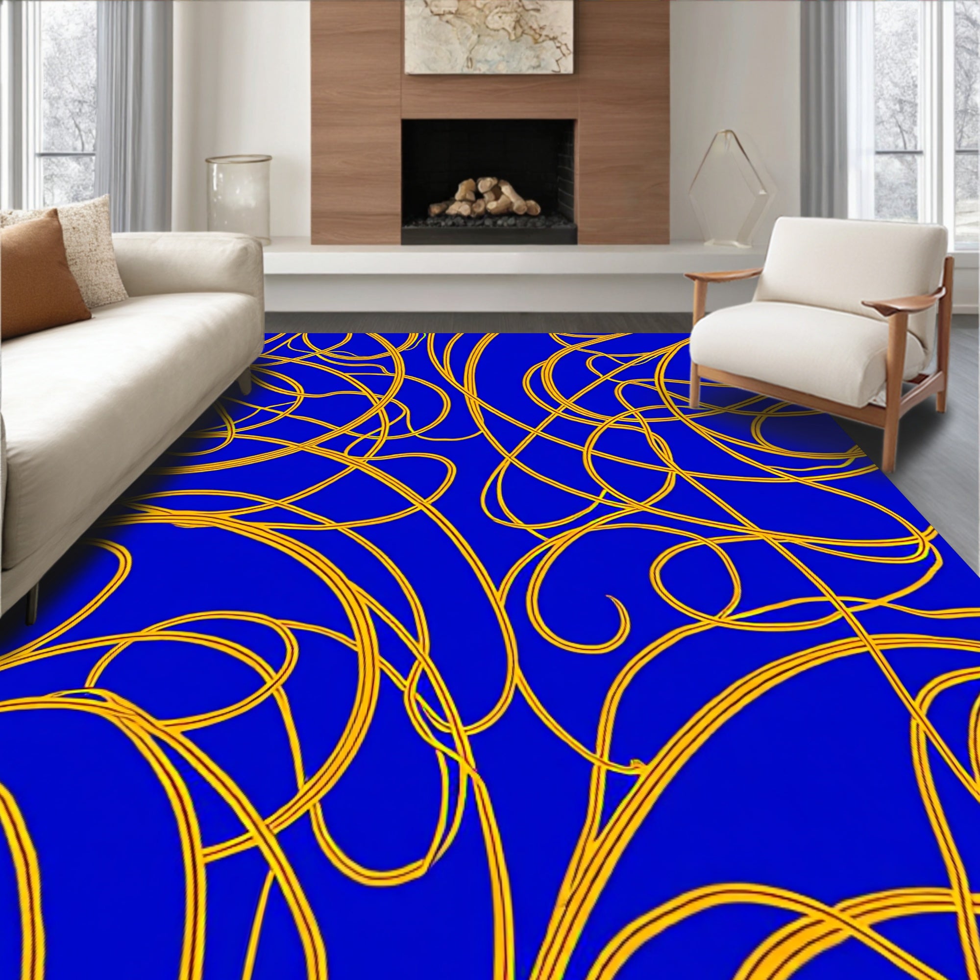 Flatwoven High Traffic Area Rug, Harmonious Interlacing Curves Dynamic Rhythmic Flow Arrangement, Non Slip, Stain Resistant, Washable Area Rugs for Living Room, Bedroom (Blue) Overview: