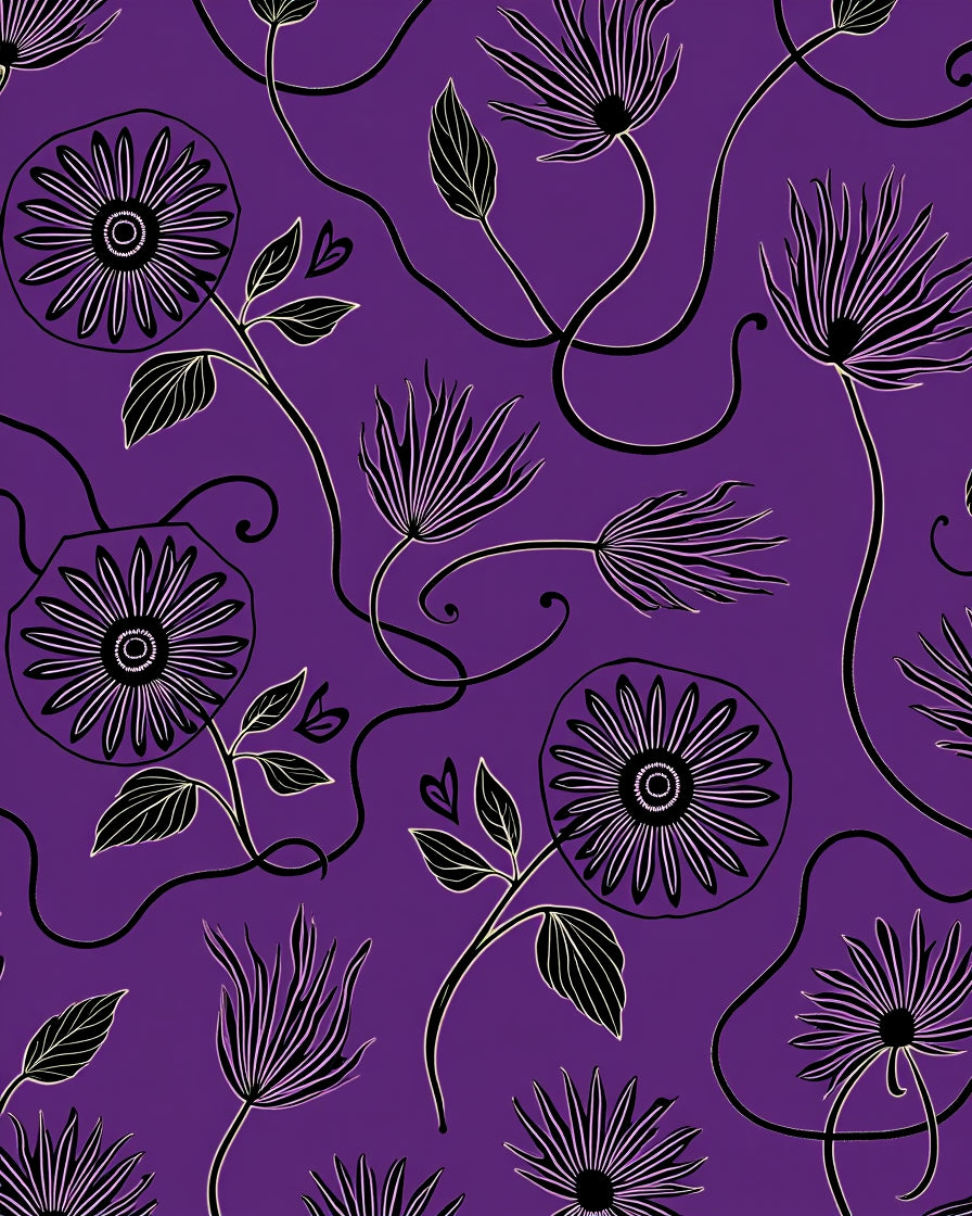 Heirloom Botanical Illustration Delicate Vine Interwoven (Purple)