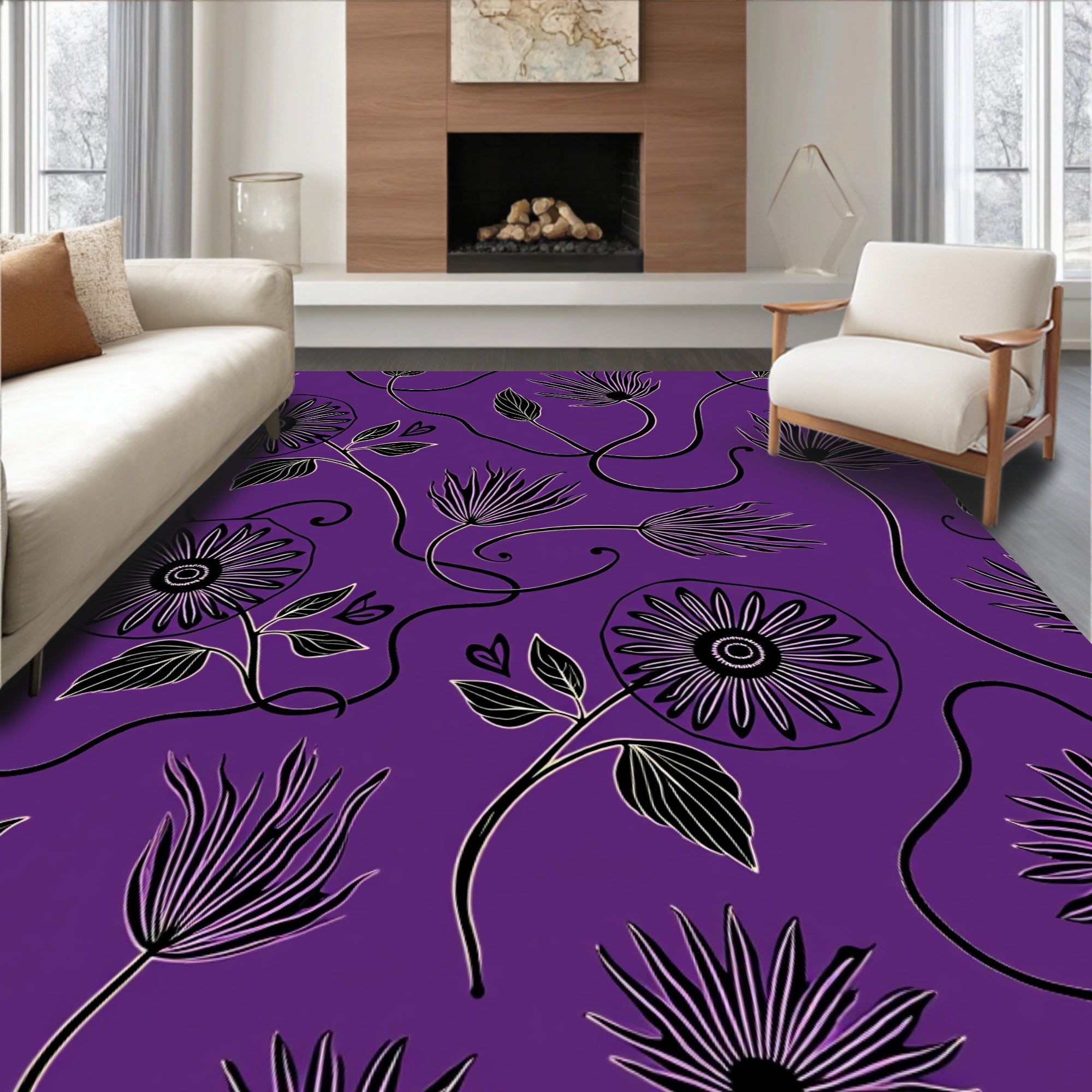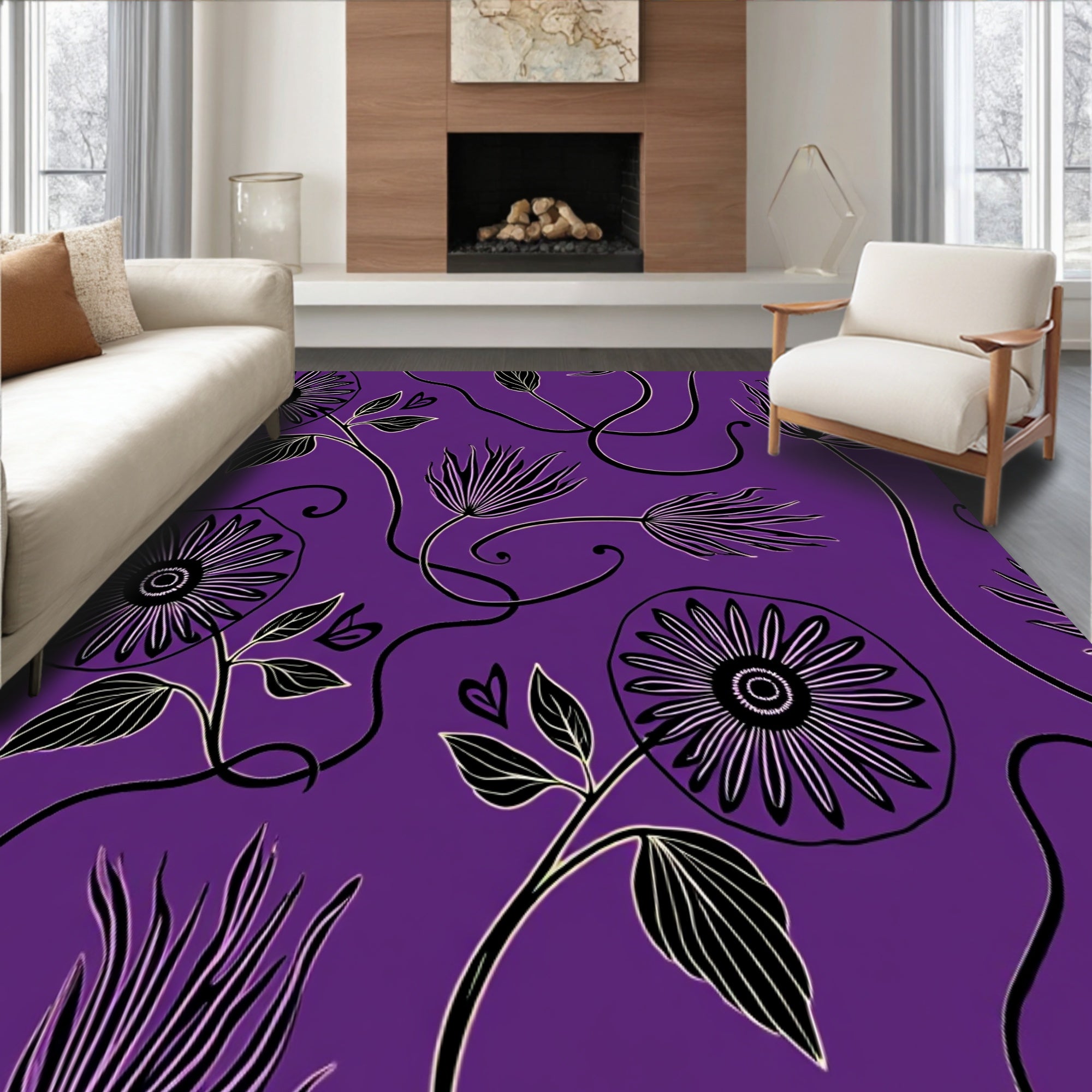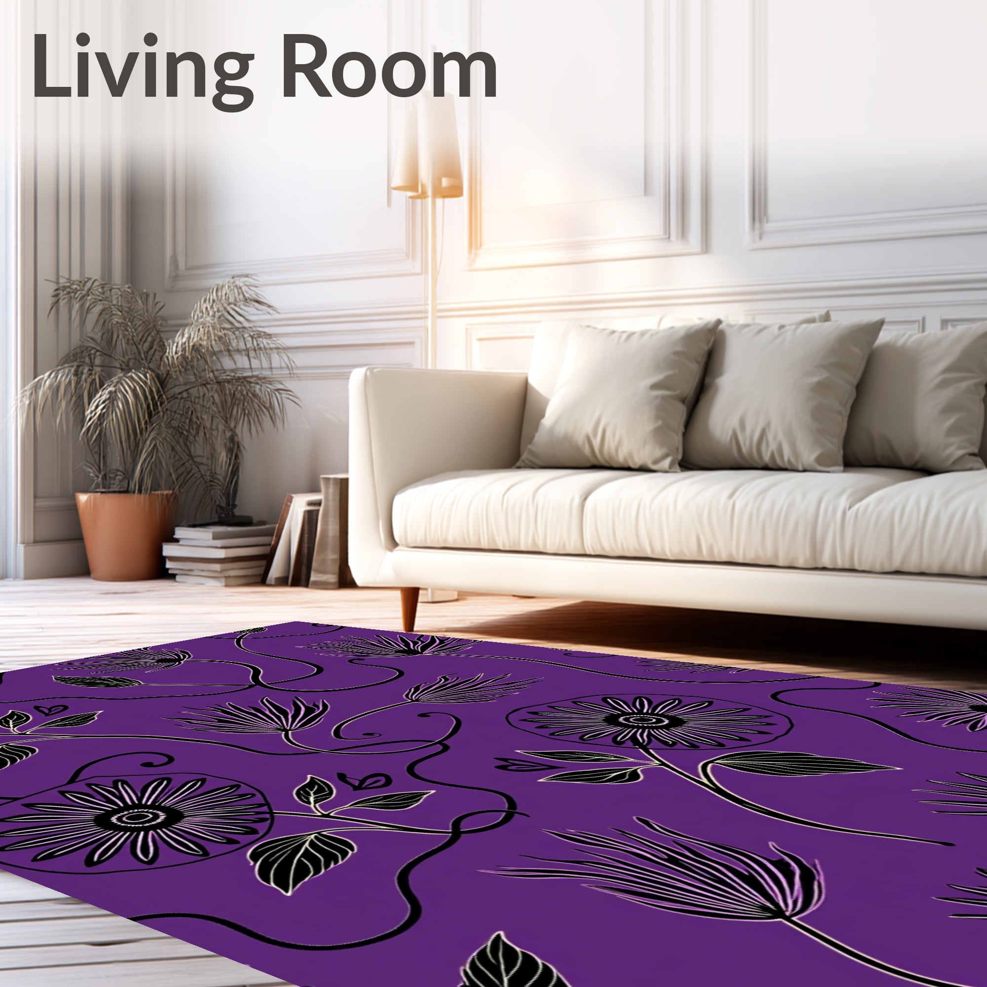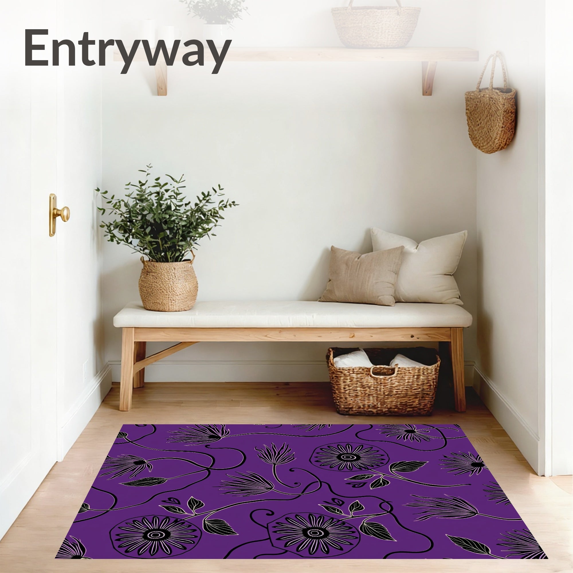 Flatwoven High Traffic Area Rug, Heirloom Botanical Illustration Delicate Vine Interwoven, Non Slip, Stain Resistant, Washable Area Rugs for Living Room, Bedroom (Purple) Overview: