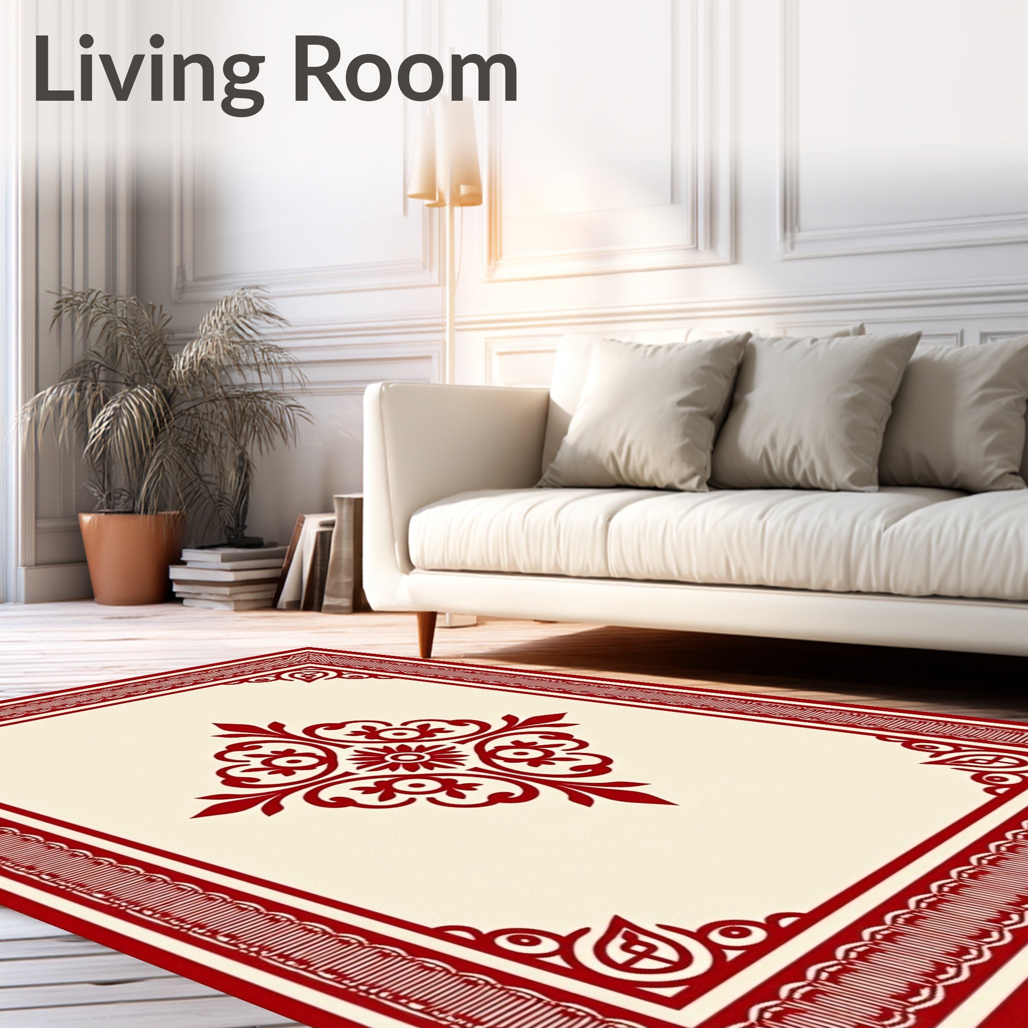 Flatwoven High Traffic Area Rug, Heritage Artisan Damask Flooring Treasure, Non Slip, Stain Resistant, Washable Area Rugs for Living Room, Bedroom (Red) Overview: