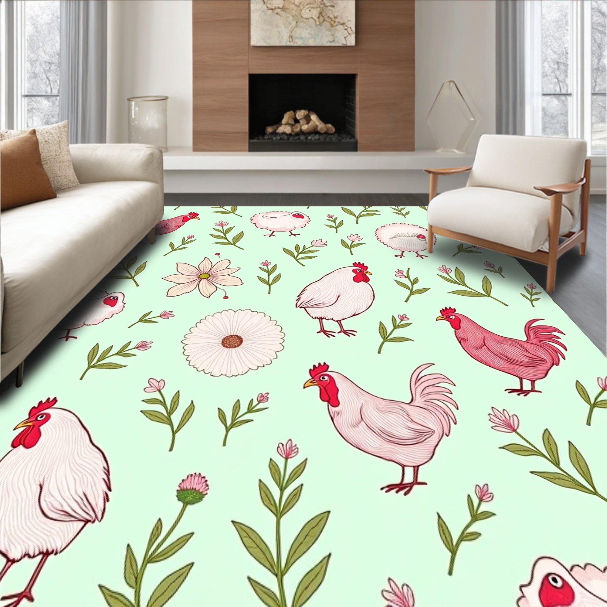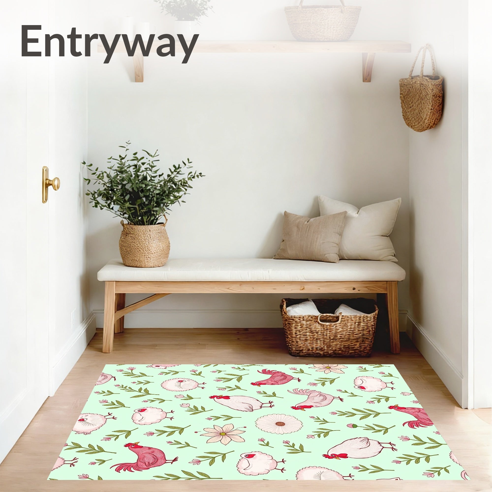Flatwoven High Traffic Area Rug, Heritage Farm Animal Ensemble with Cottage Garden Florals, Non Slip, Stain Resistant, Washable Area Rugs for Living Room, Bedroom (Green) Overview: